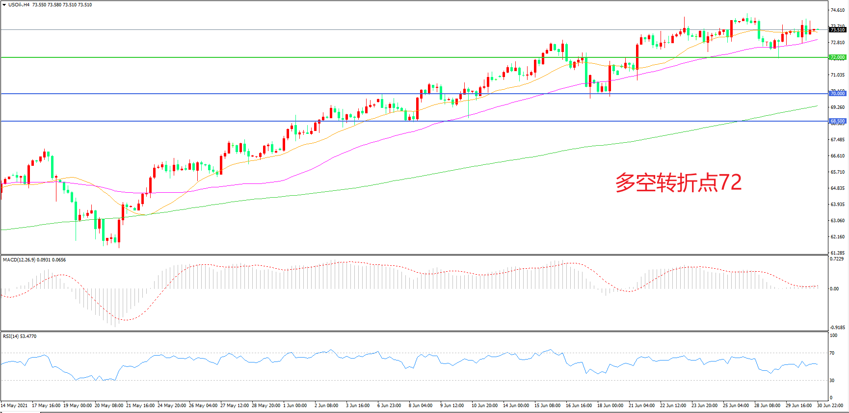 交易策略:在72.00之上看涨,目标75.00    78.00