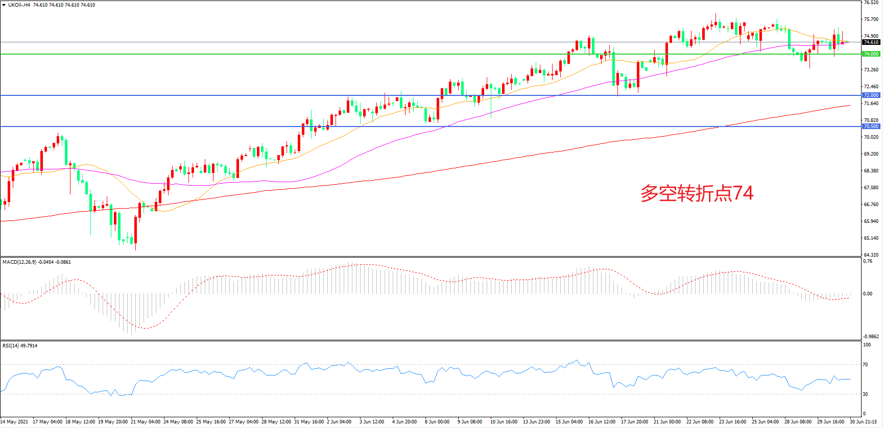 交易策略:在74.00之上看涨,目标77.00    80.00
