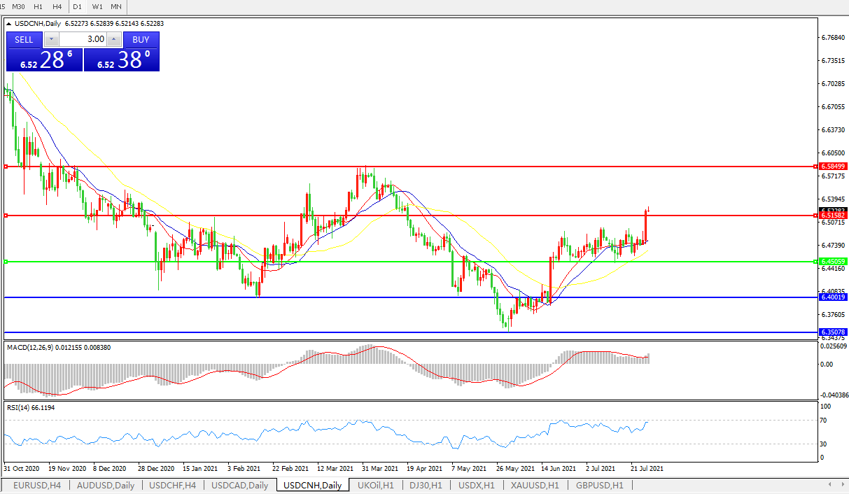 交易策略: 在6.4505之上,看涨,目标价位为6.5150,然后为6.5850。