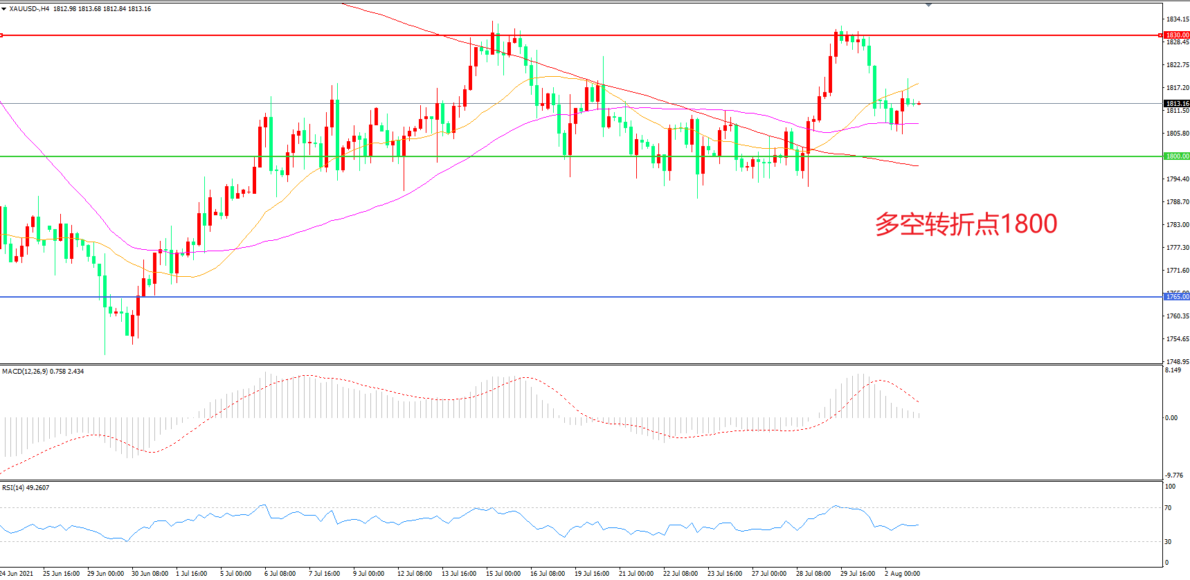 周一(8月2日),美国公布的7月ISM制造业PMI不及预期,该数据表明美国制造业在疫情之后复苏步伐依然缓慢,市场风险情绪回落,现货黄金先涨后跌,最终收报1813.08美元/盎司。在重磅数据来临前,多空双方表现都相对谨慎,即将到来的非农就业报告,有望引发金价的新一波的巨震。