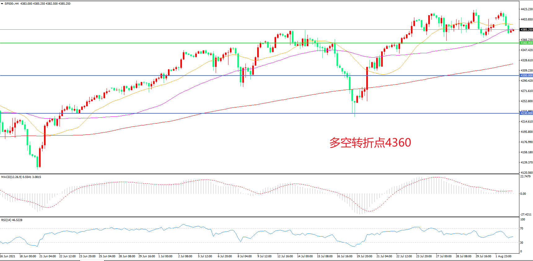 备选策略:在4360.00之下看跌,目标4300.00    4230.00