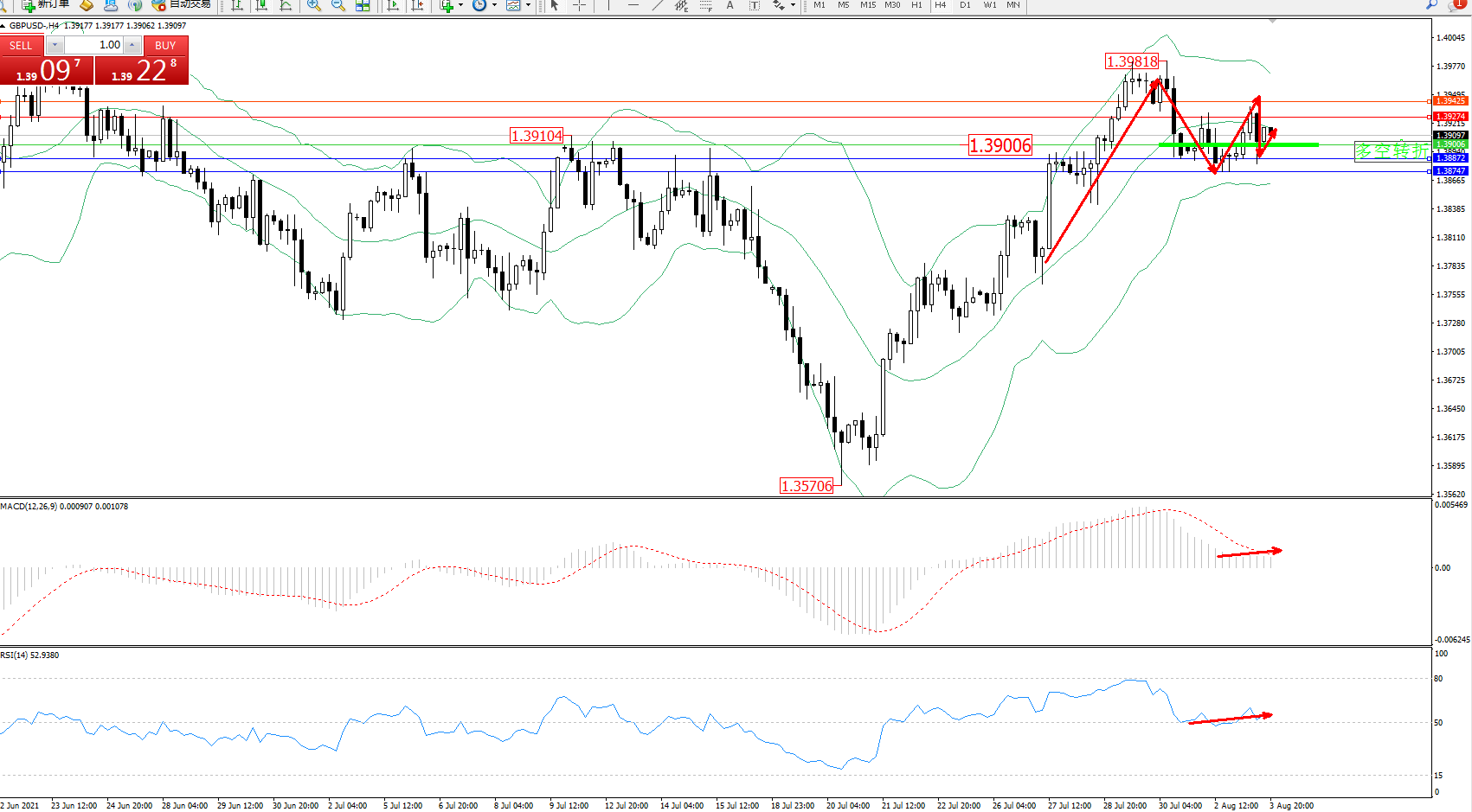 交易策略:1.39006上方看涨,目标1.39224、1.39425