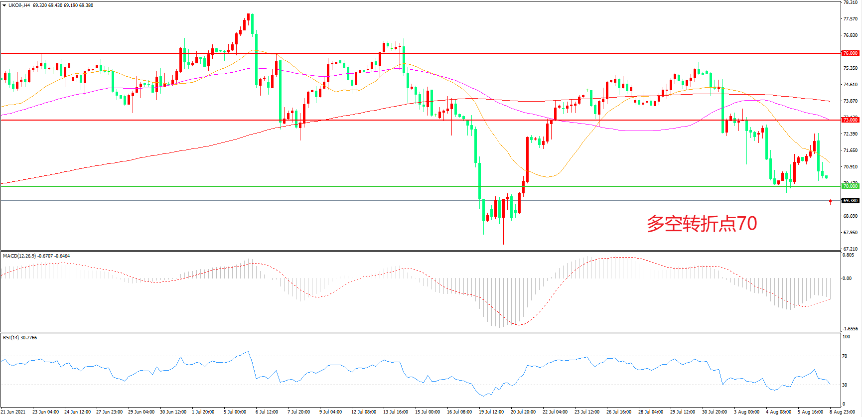 交易策略: 在70.00之下看跌,目标66.50 62.00