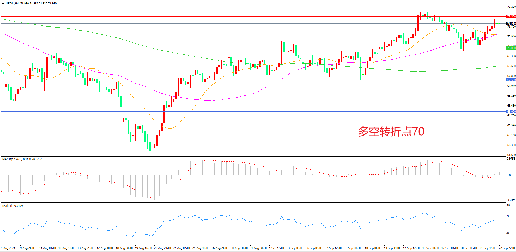 交易策略:在70.00之上看涨,目标72.50 75.00