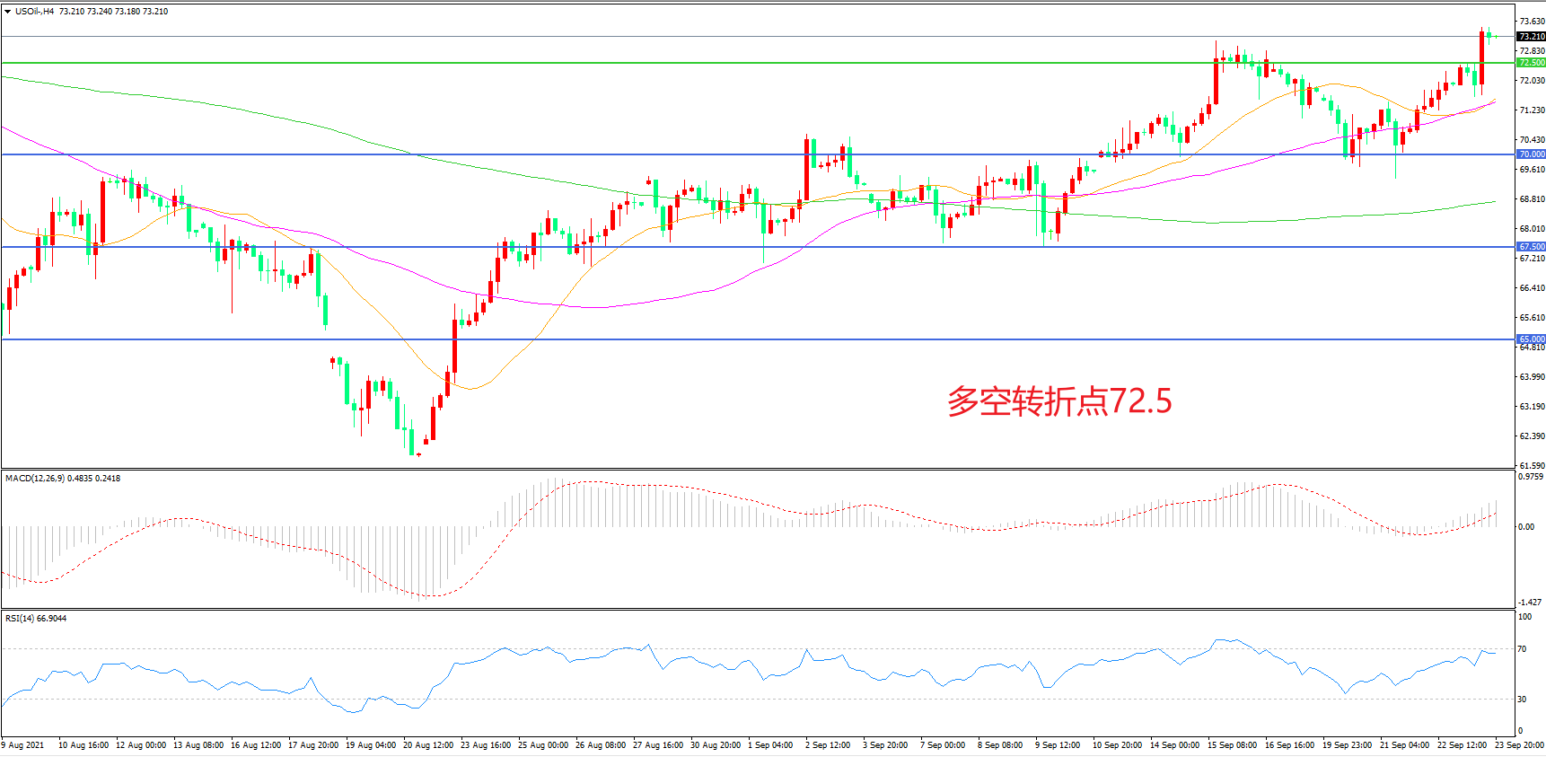 周四(9月23日),本次季节性飓风对美国原油供应面的影响超预期,截至9月23日当周,美湾地区仍有约30万桶/天的产能处于关闭状态,但炼厂回升相对更快。库存的快速消耗为多头带来信心,美国WTI原油大幅拉升,收报73.19美元/桶。接下来的增量主要是OPEC+的增产,但尼日利亚等国的生产瓶颈可能导致联盟整体的产量增长不及份额上限,油价延续强势概率较大。