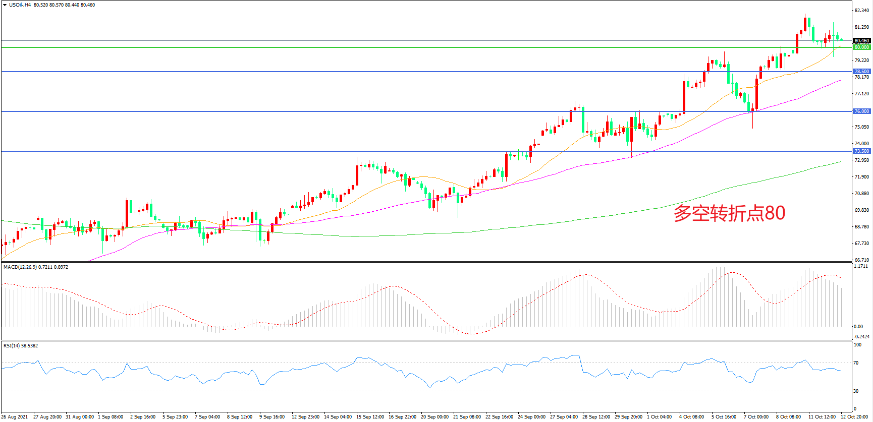 多空转折点:80.00