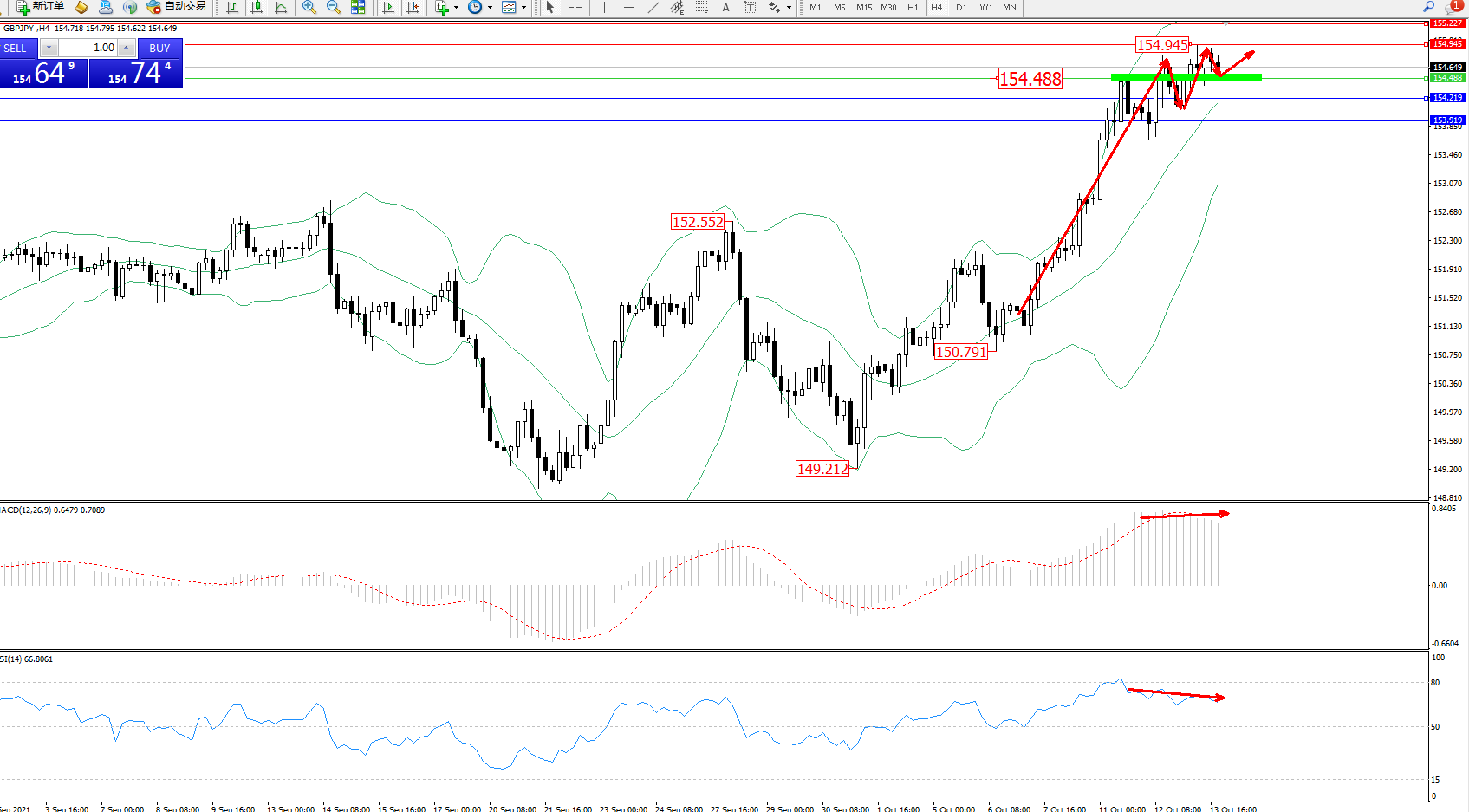 技术点评:多头动力延续布林带指标通道中上轨区间持续震荡上扬,高位抵达154.945位置节点后开始短暂整理,布林带指标呈收口持续震荡上扬中,MACD指标处于多头区域高位持续平移,RSI指标处于多头区域触及80均衡线后开始缓慢整理徘徊下行;