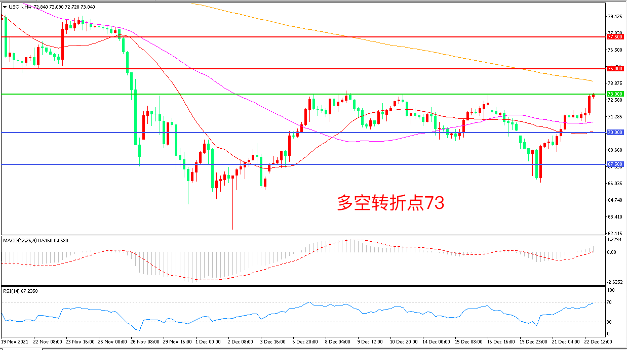交易策略:在73.00之上看涨,目标75.00 77.50