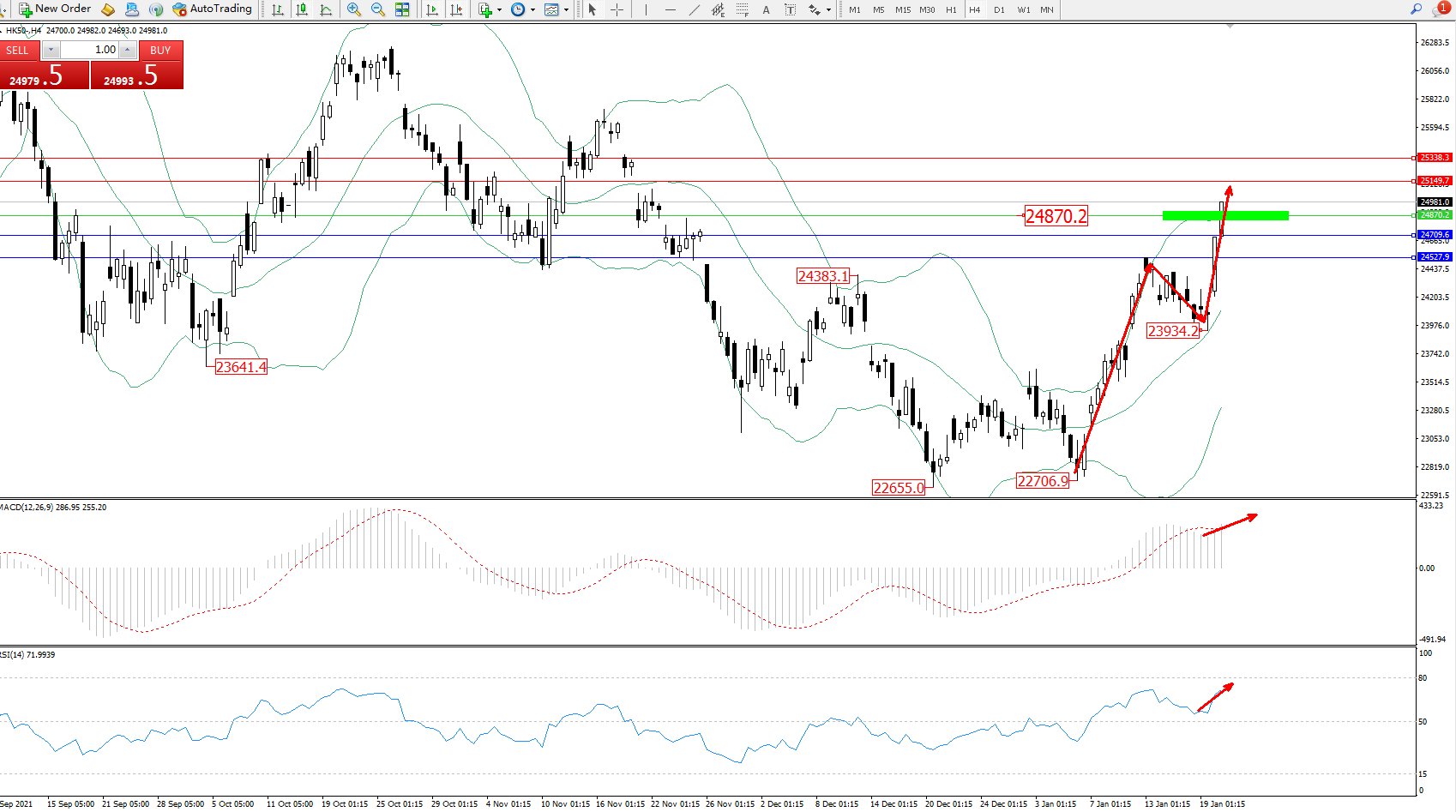 恒指HK50 ——4小时K线图显示: