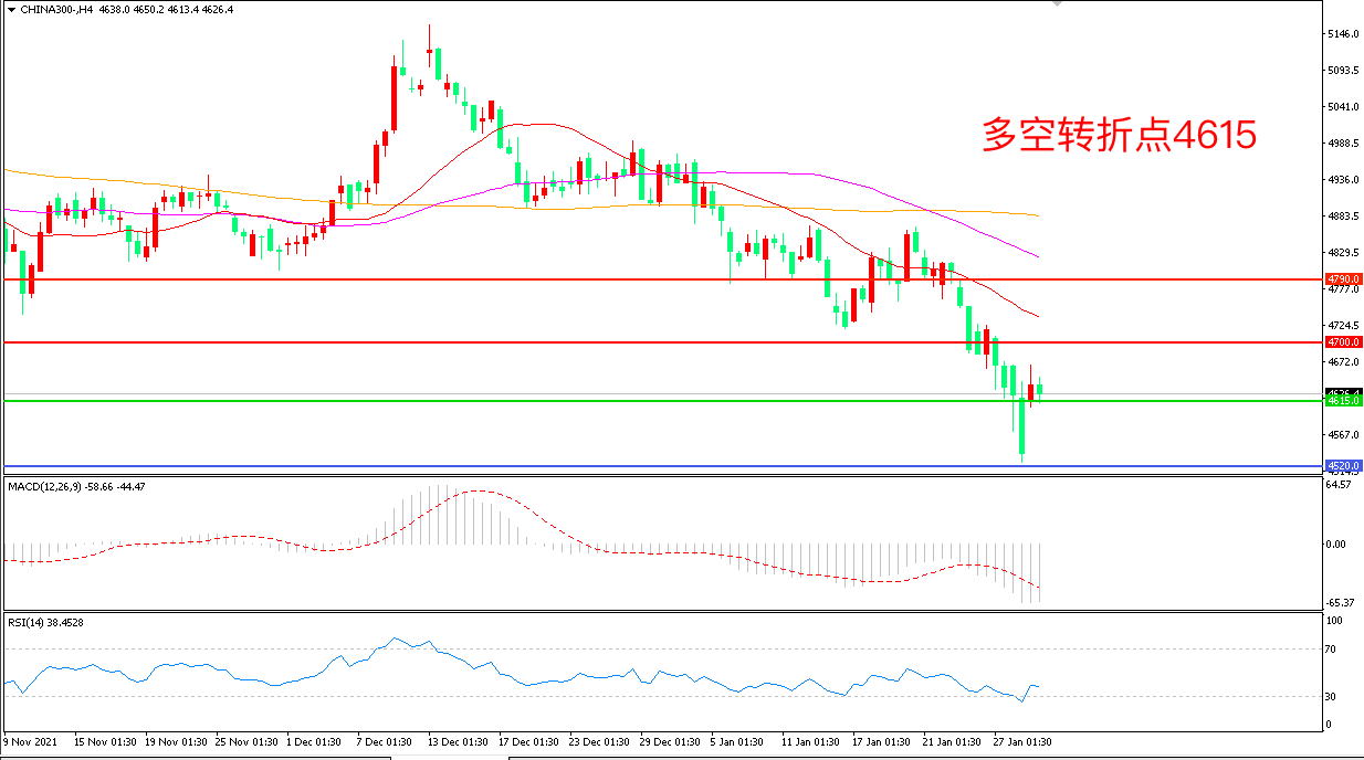 备选策略:在4615.00之下看跌,目标4520.00                4450.00