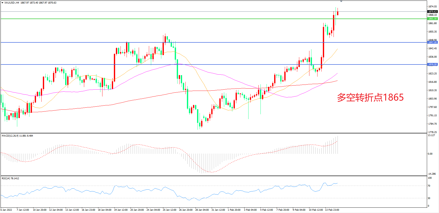 交易策略:在1865.00之上看涨,目标1885.00 1900.00