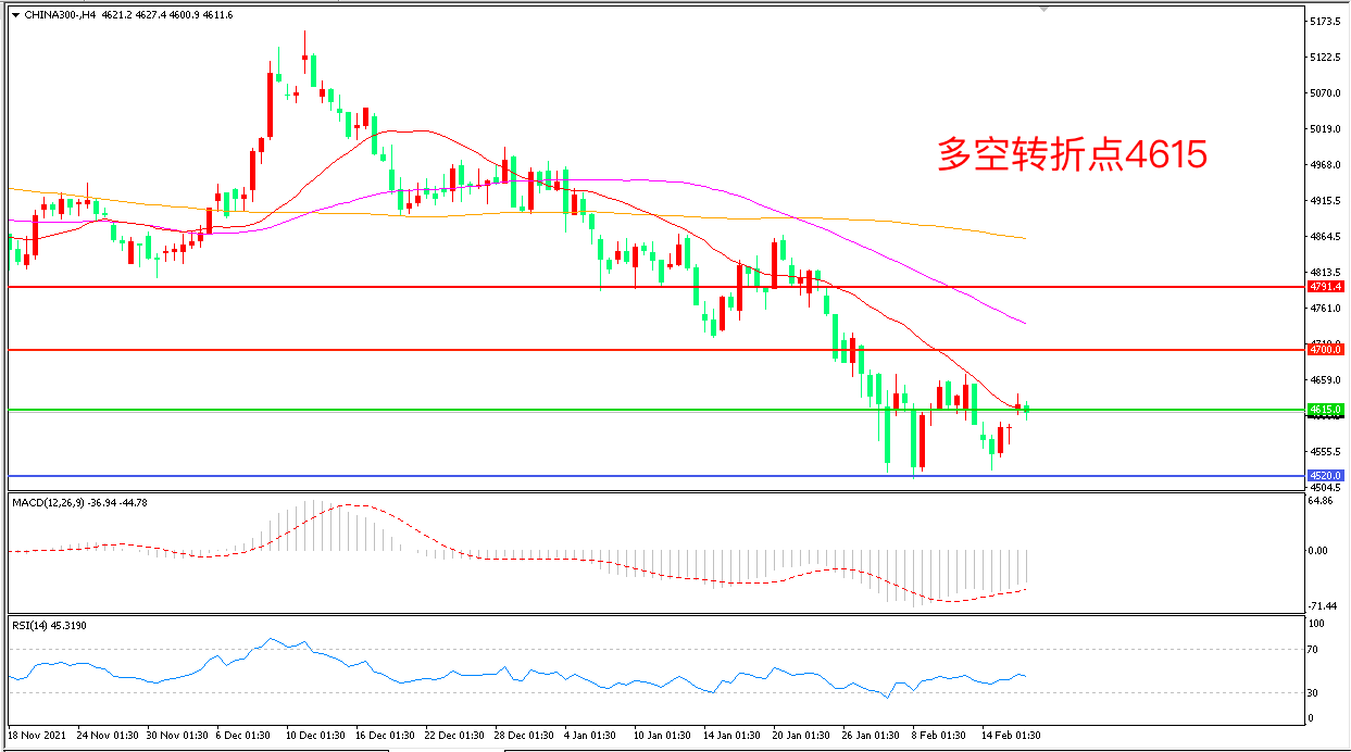 交易策略:在4615.00之下看跌,目标4520.00                4450.00