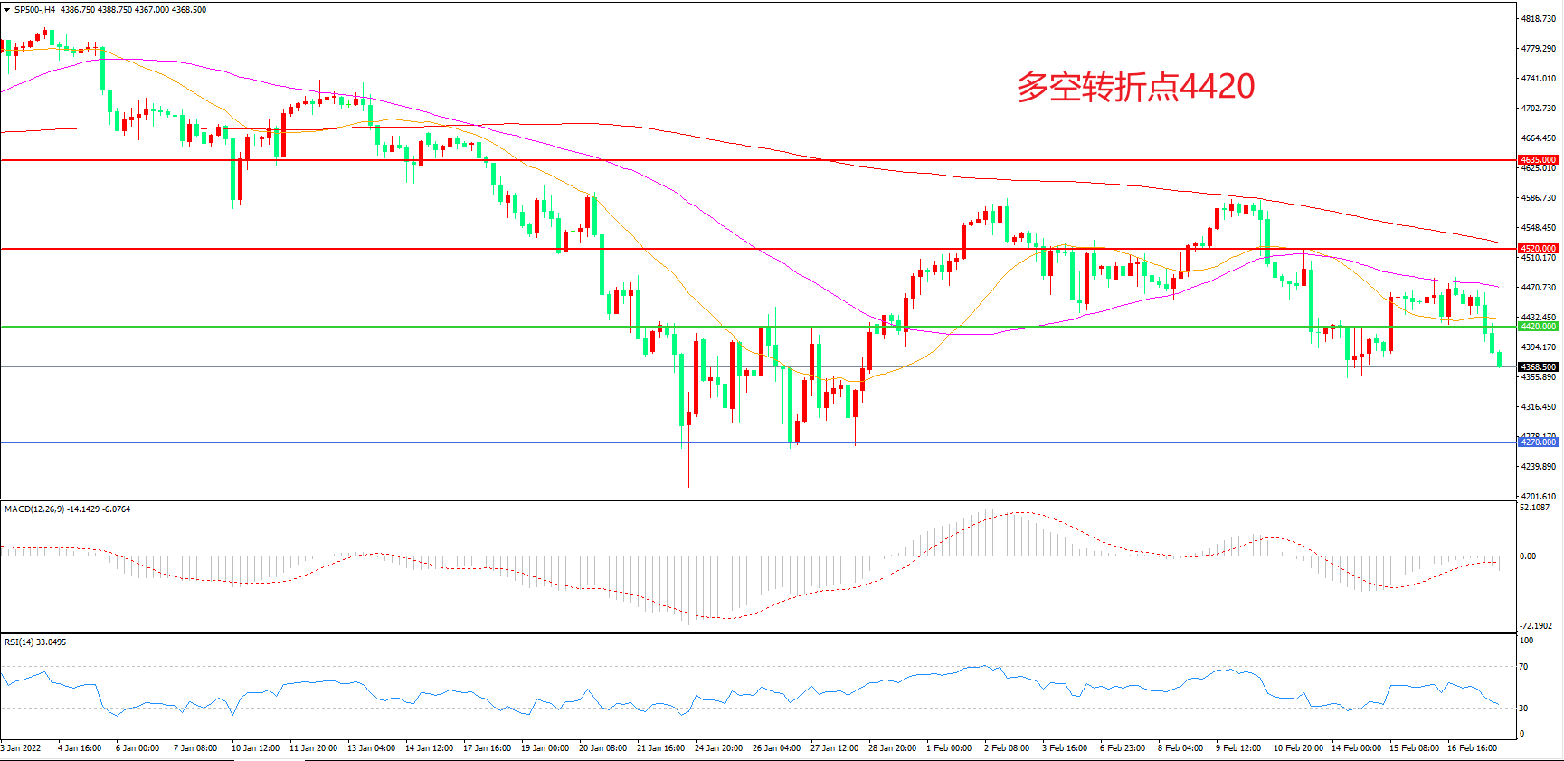 周四(2月17日),美国国务院确认,俄罗斯已将美国驻俄副大使戈尔曼驱逐出境,美股遭受地缘紧张局势和美联储加速收紧货币前景的双重打击,标普500大幅回落,收报4374.50点。拜登声称俄罗斯可能在“接下来几天内”对乌克兰发起攻击,投资者正在加速投入避险资产怀抱,美股震荡下行概率较大。