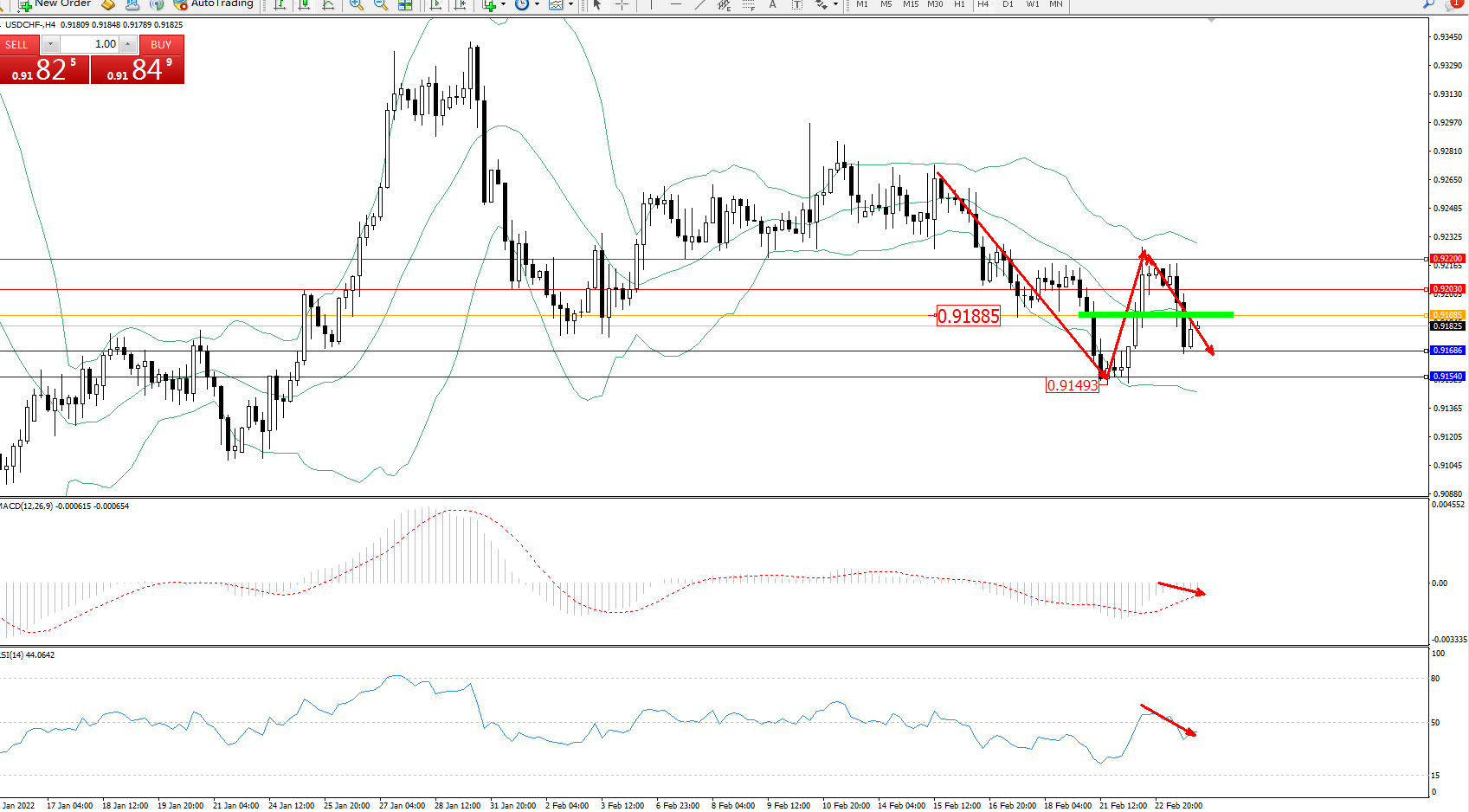 交易策略:0.91885下方看跌,目标0.91686、1.91540
