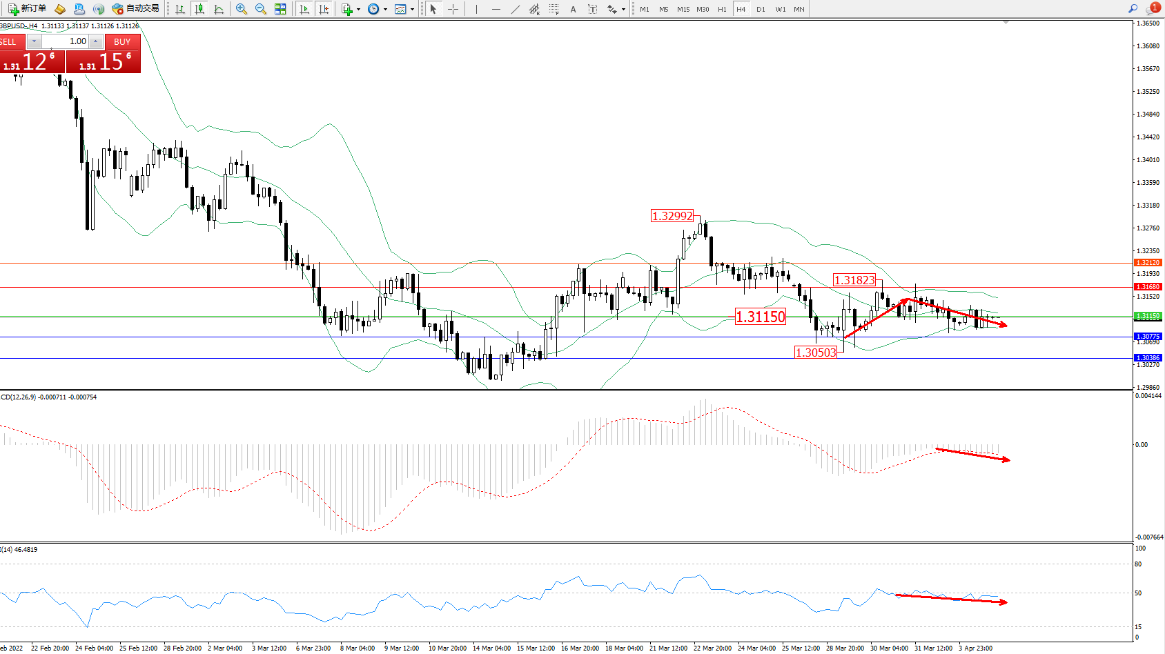 备选策略:1.31150上方看涨,目标1.31680、1.32120