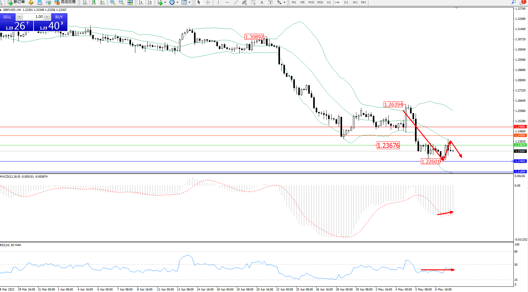 英镑美元GBPUSD ——4小时K线图显示: