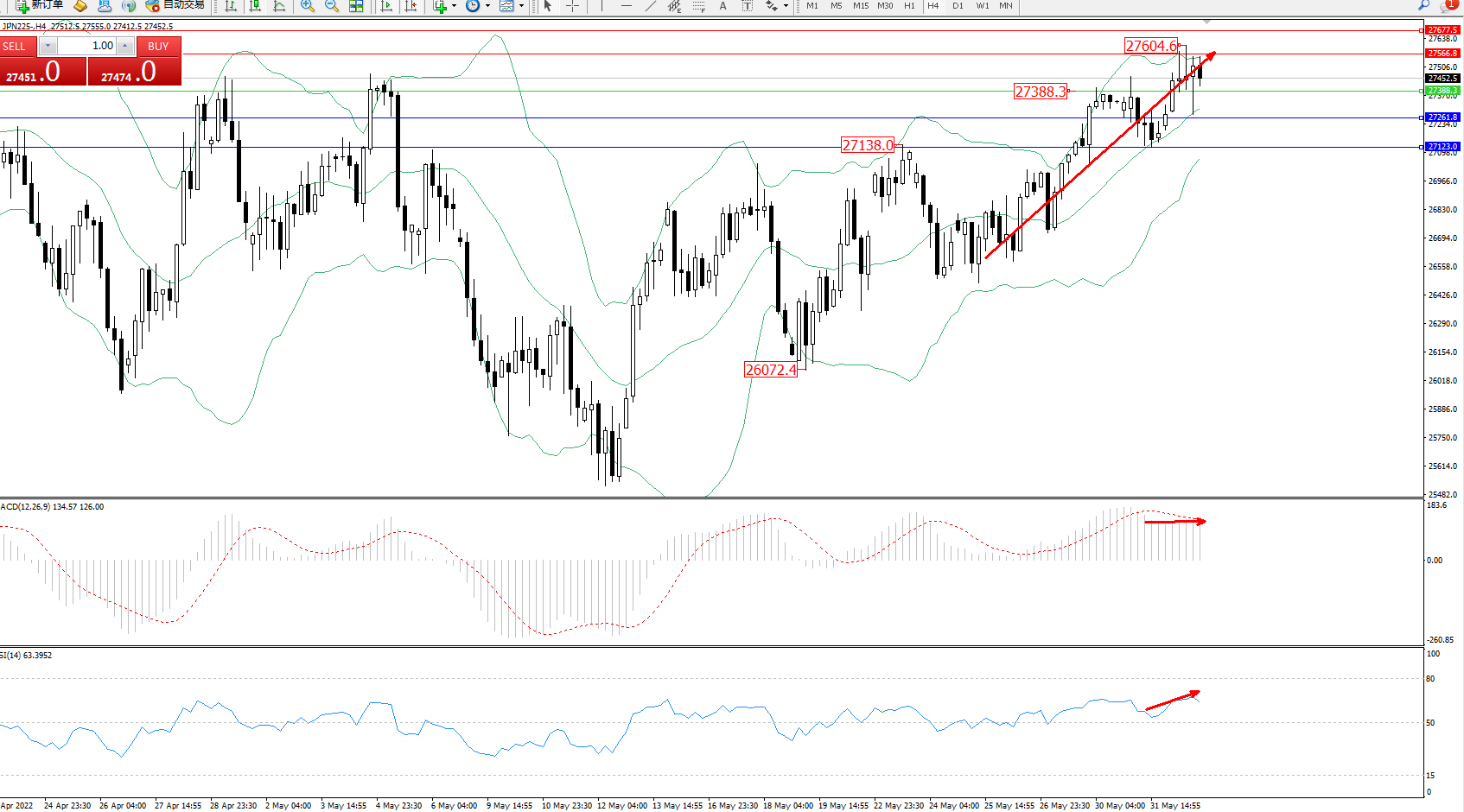 日经225指数6月1日(周三)收盘上涨140.70点,涨幅0.52%,报27420.50点。日本5月制造业活动增速为三个月来最慢,因亚洲严厉的防疫限制措施加剧了供应链中断,并提高了经济前景面临的风险。