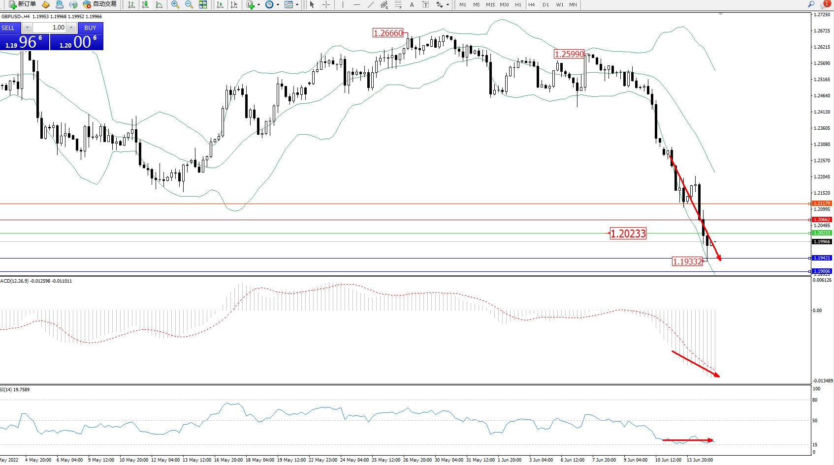 技术点评:空头动力延续布林带指标中下轨区间持续震荡下挫,低位抵达1.19332附近震荡,短期空头持续下挫走势或将延续,布林带指标呈收口走势不断下行,MACD指标处于空头区域低位持续下行,RSI指标处于空头区域低位维持整理平移中;