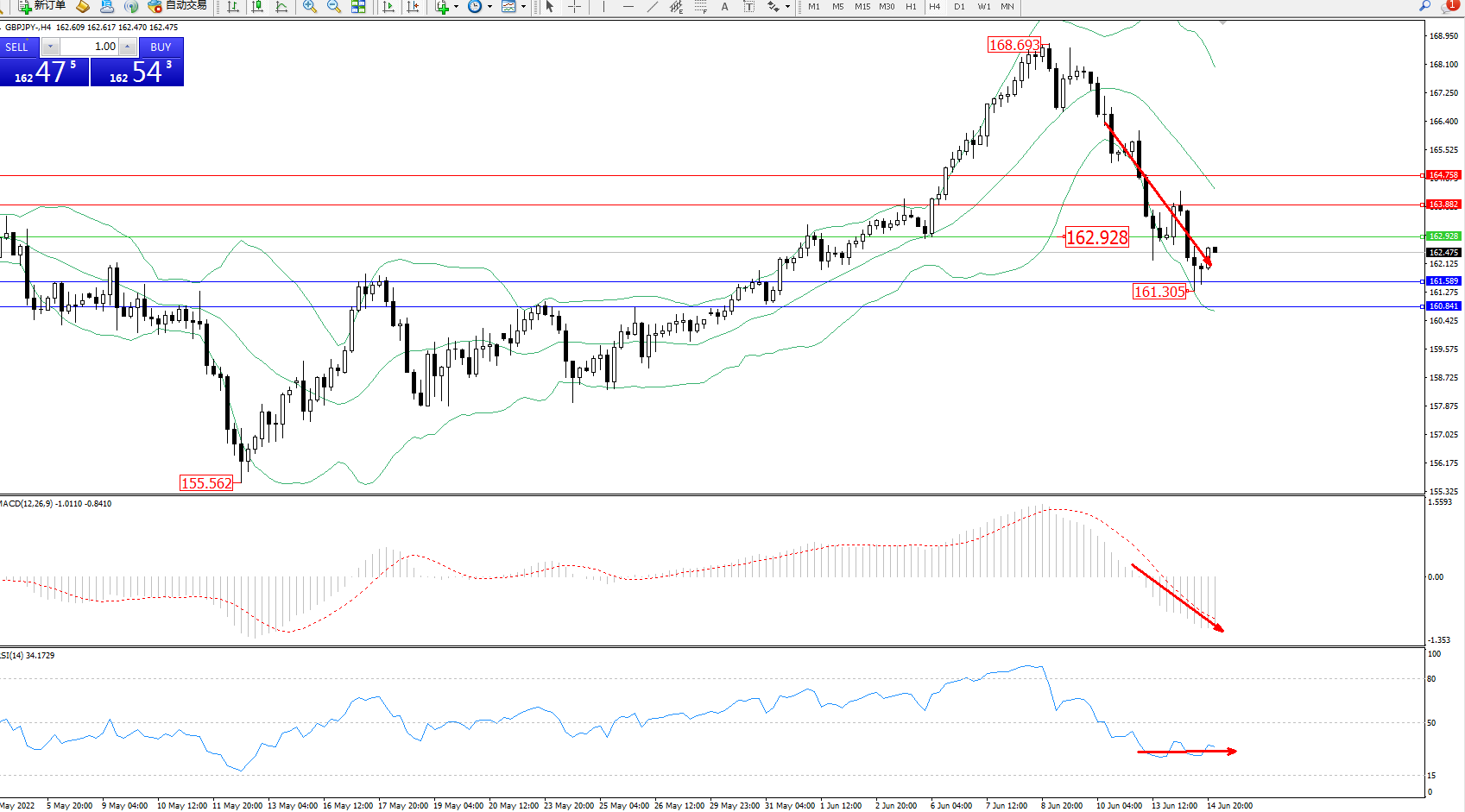 技术点评:空头动力延续布林带指标下轨附近持续震荡下挫,低位抵达161.305附近节点整理,短期空头动力有继续向下移动态势,布林带指标呈收口走势不断下移中,MACD指标处于空头区域维持震荡向下移动,RSI指标处于空头区域维持整理平移;