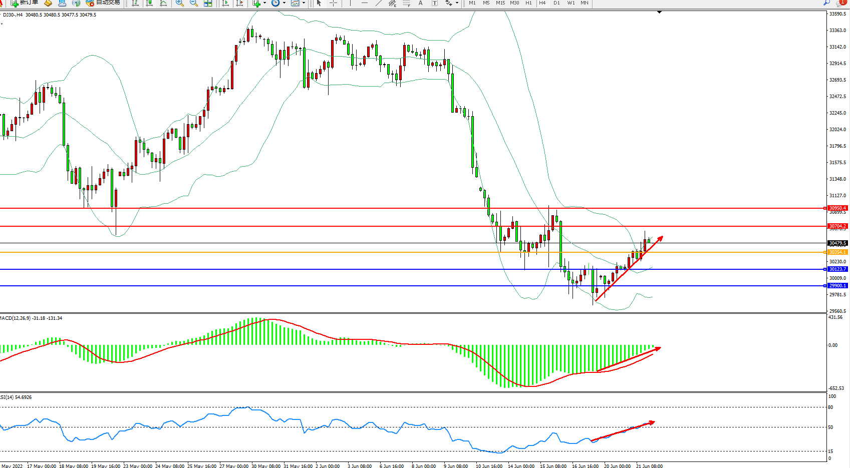 道琼斯指数6月21日(周二)收盘上涨643.39点,涨幅2.15%,报30532.17点;美元上涨背景下,美债收益率受到通胀忧虑、有关美联储对此可能反应的预期影响而飙升。