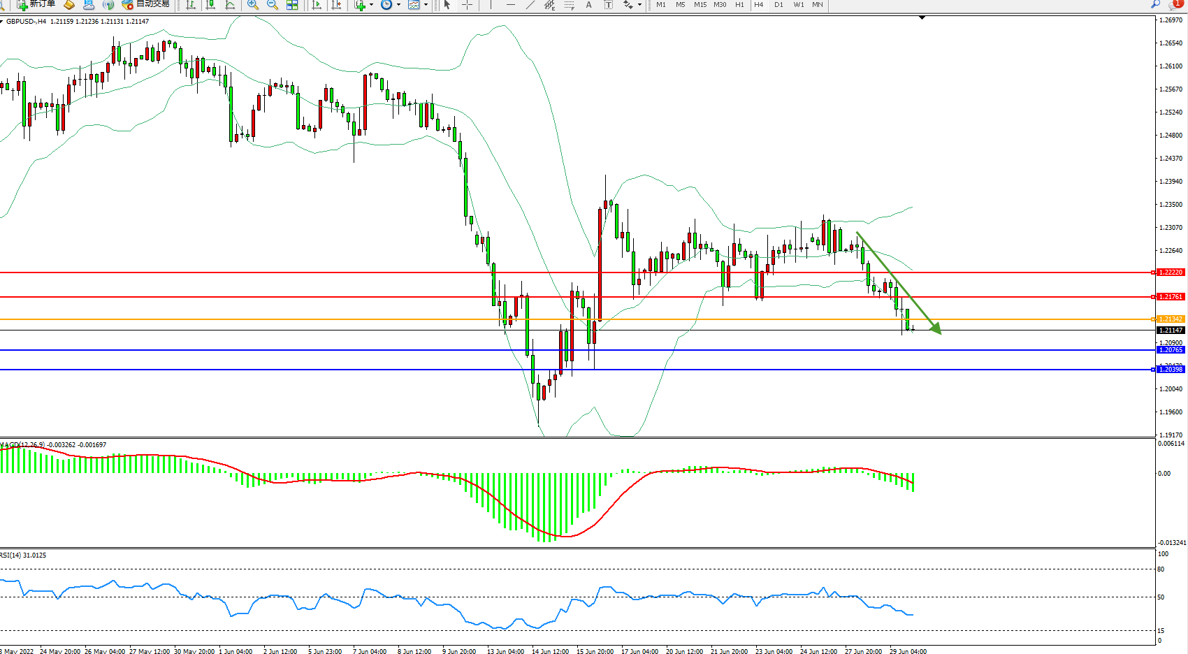 英镑美元GBPUSD ——4小时K线图显示: