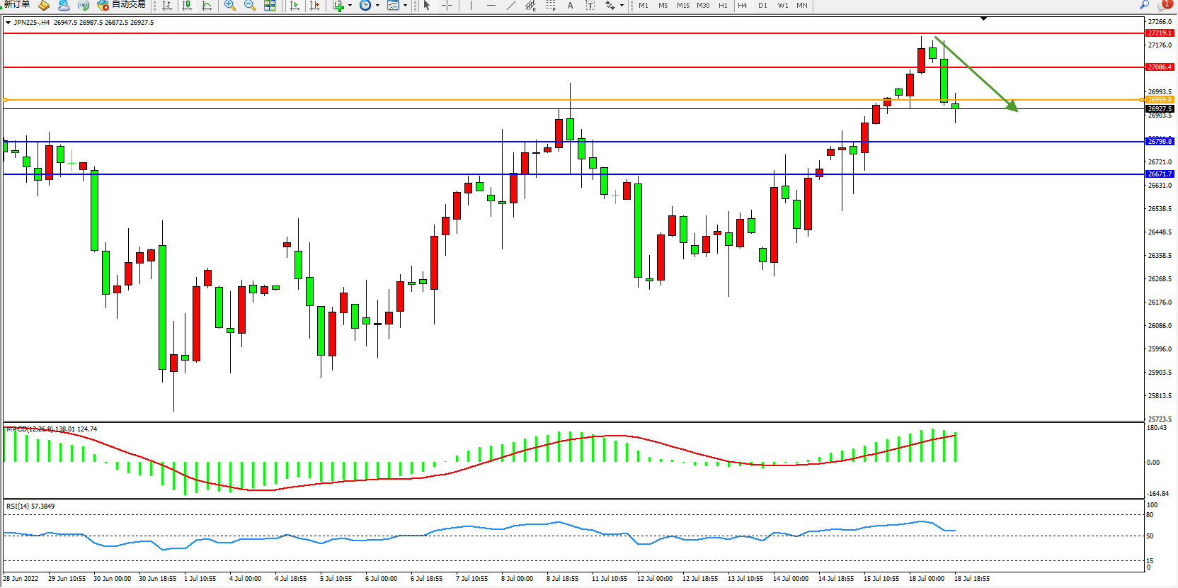 日经225指数7月15日(周五)收盘上涨151.61点,涨幅0.57%,报26795.00点。日本上一财季净利润从去年同期的454亿日元增长至909亿日元的迅销大涨8.7%,推动零售股涨1.64%。