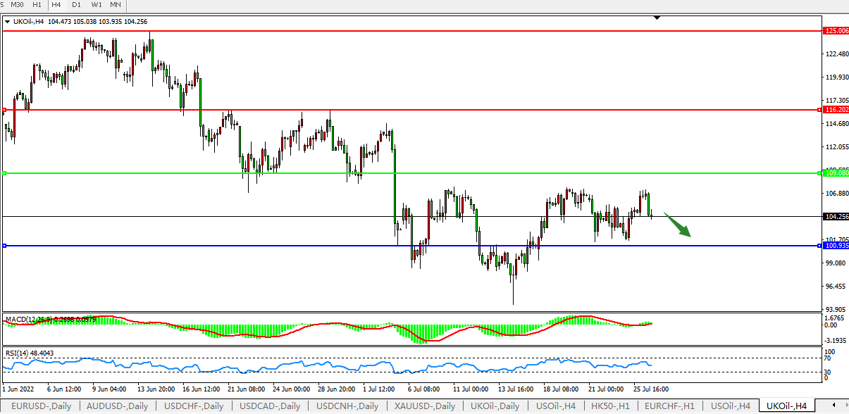 周二(7月26日)布油期货收跌0.7%,结算价报104.4美元/桶。两大原油指标价差扩大至2020年4月以来的最大水平,为近10美元/桶。美国政府表示,将从战略石油储备(SPR)中再出售2000万桶石油