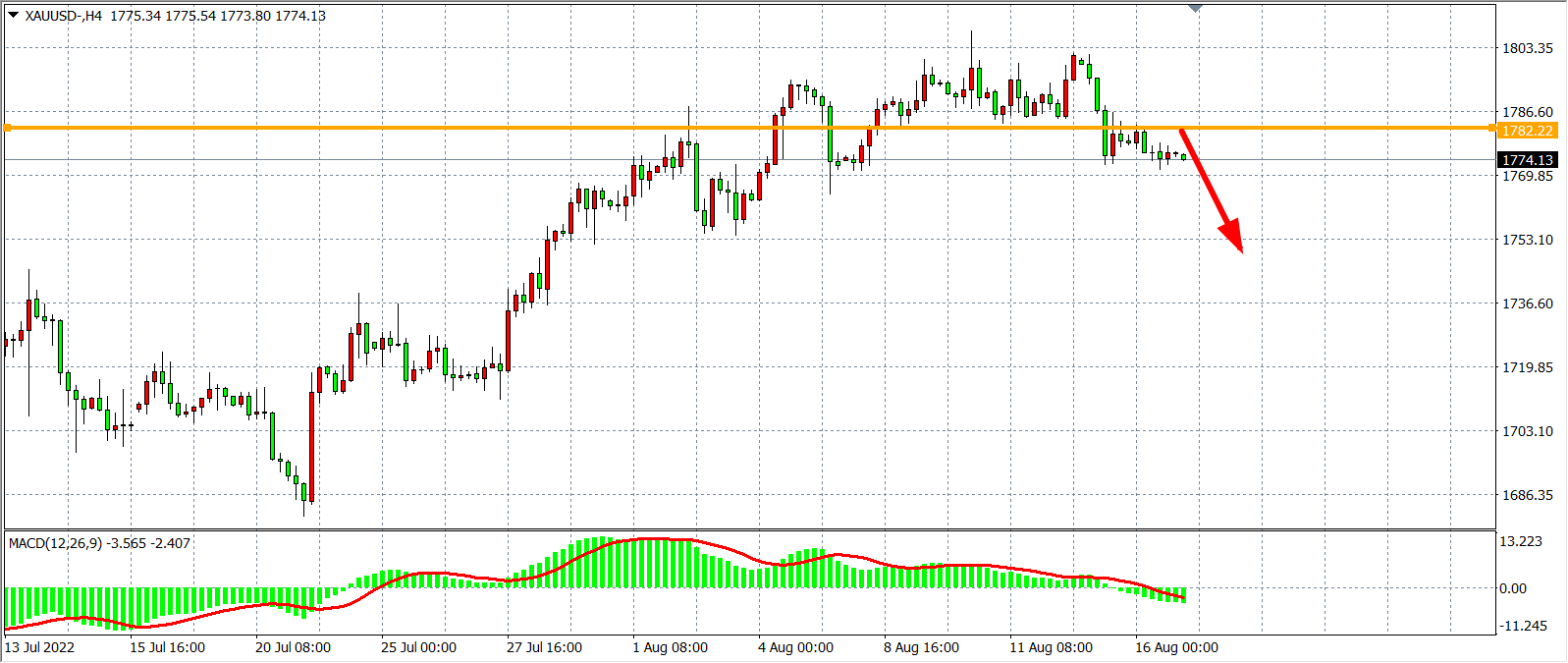 交易策略:在1782.00之下看跌,目标1770.00           1755.00