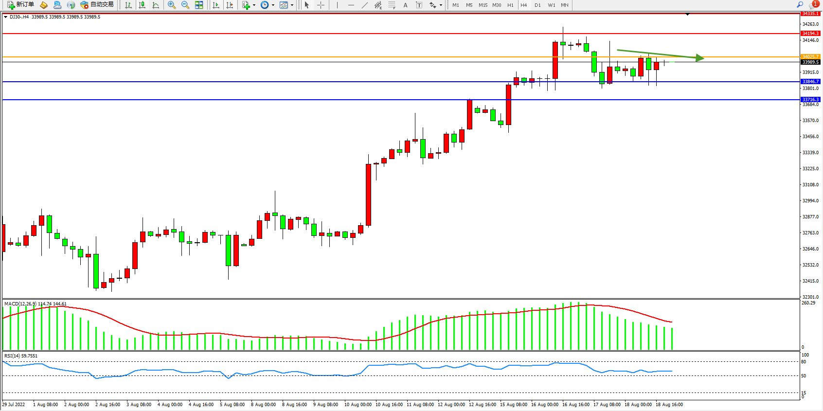 道琼斯指数8月18日(周四)收盘上涨20.63点,涨幅0.06%,报34000.95点;美国8月费城联储制造业指数意外增长,为三个月来首次,但对未来的展望依然疲弱。费城联邦储备银行周四公布的数据显示,制造业当前评估指数从-12.3升至6.2,高于所有经济学家的预估。
