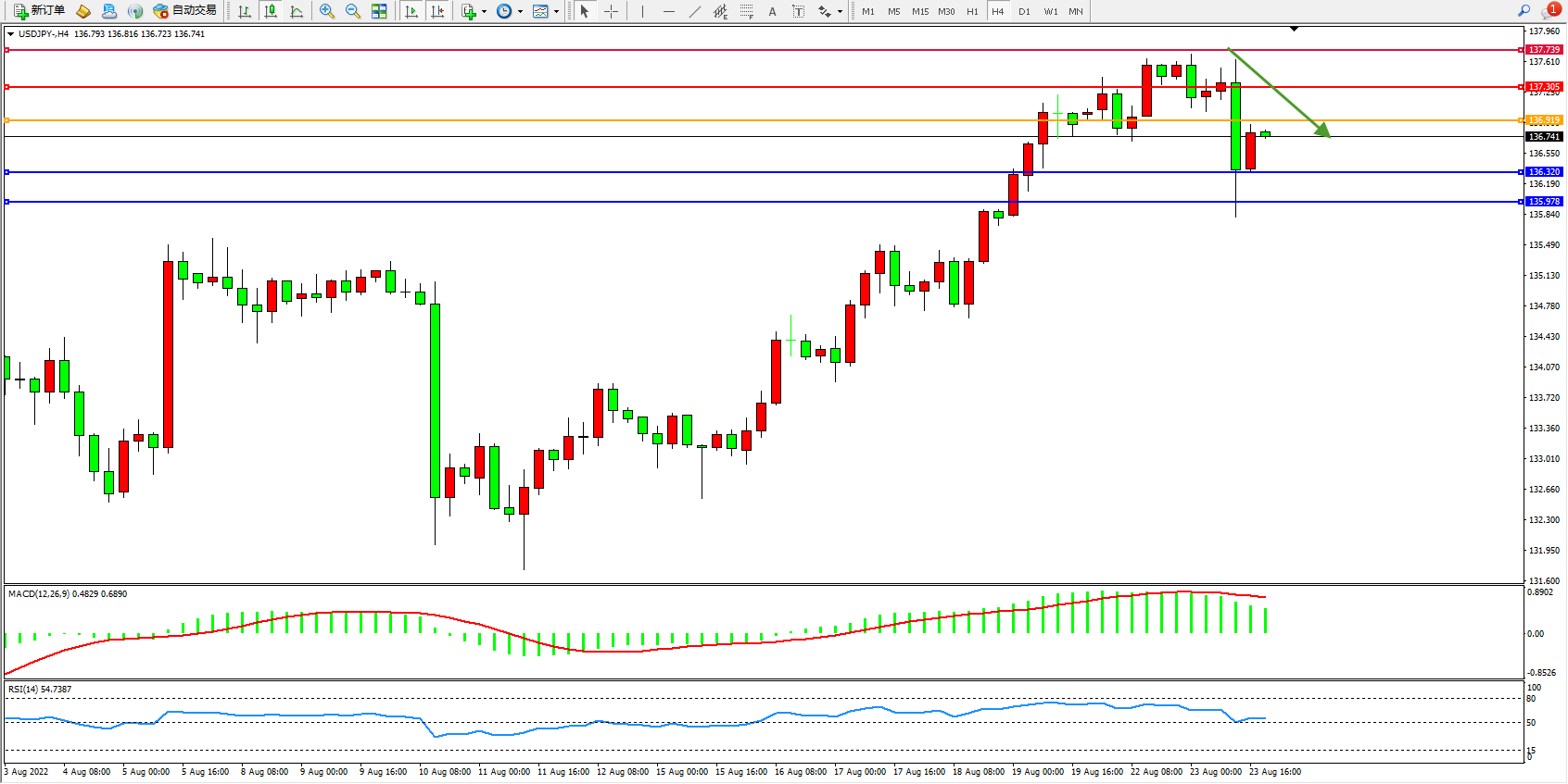 美元兑日圆维持136.741附近震荡,投资者现在明显预期美联储主席鲍威尔周五在杰克森霍尔将发出相对鹰派的信息,风险厌恶情绪和美联储鹰派基调完美结合,美元将走高,在杰克逊霍尔年会召开前,美元兑日元料仍会保持震荡走高的节奏。