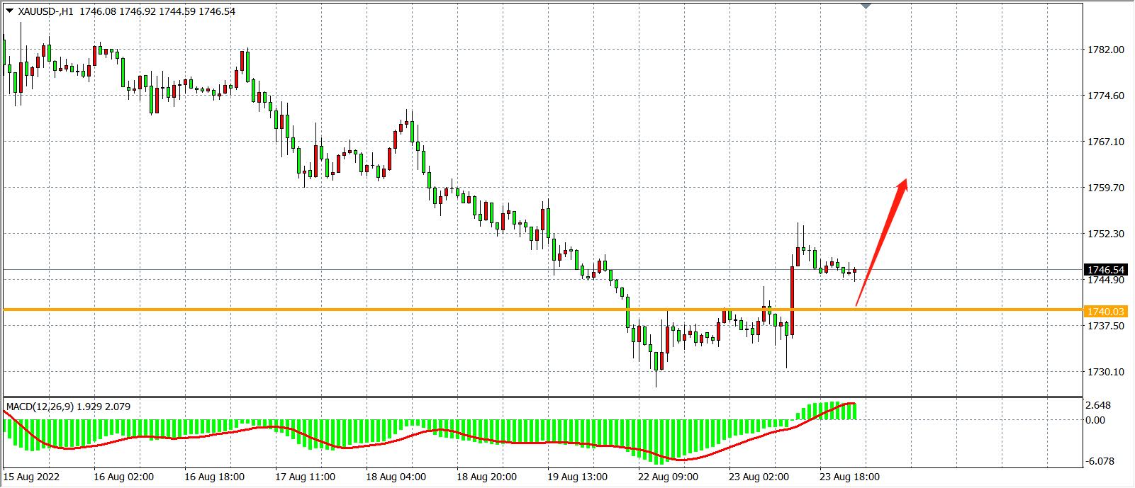 周二(8月23日)美国8月Markit服务业、制造业PMI双双创两年新低,另外,美国新屋销售出现年内第六次下滑,创下2016年初以来的最低增速。受经济数据走差的影响,美元指数冲高回落,现货黄金强势反弹,一度涨至1750美元上方,最终收涨0.69%。