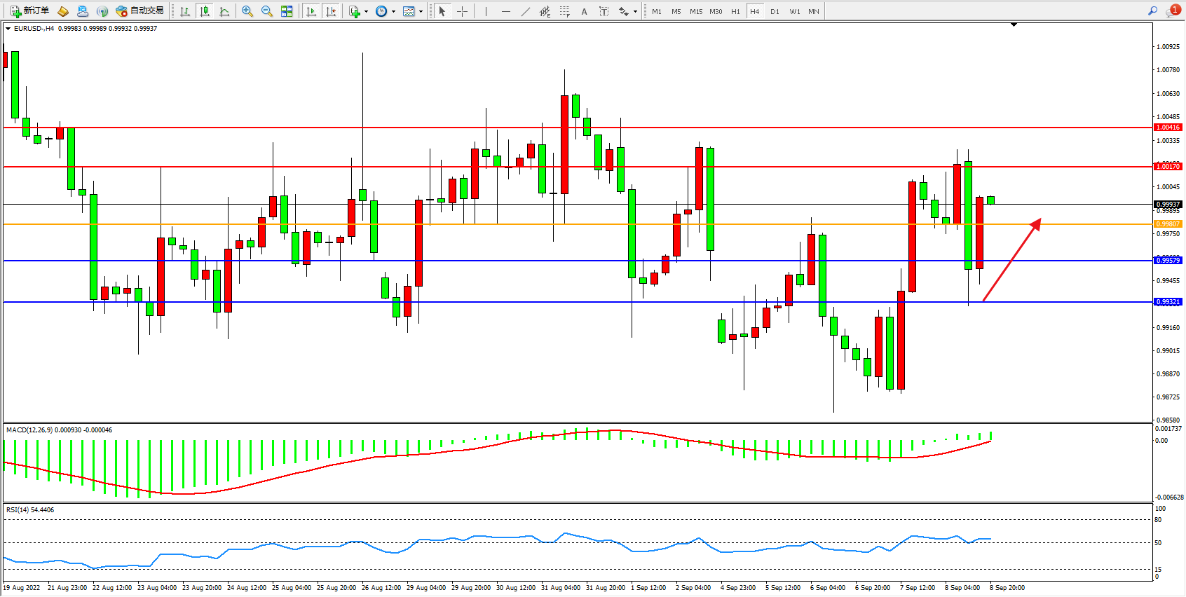 欧元兑美元维持0.99937附震荡,欧洲央行将三大主要利率均上调75个基点,符合市场预期,为1999年来首次大幅加息75个基点。
