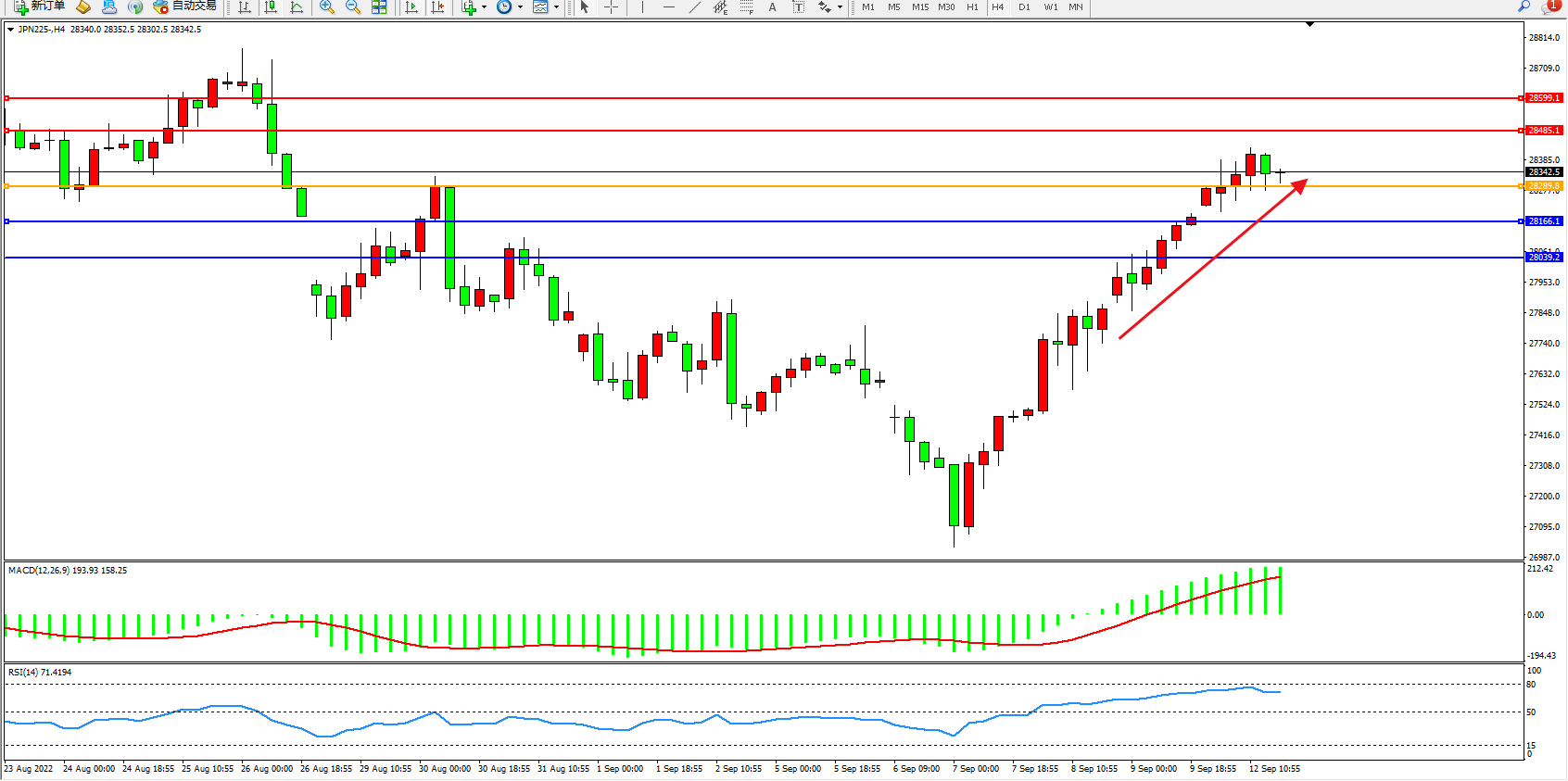 日经225指数9月12日(周一)收盘上涨316.25点,涨幅1.12%,报28531.00点。预计日本央行本月将按计划结束对小企业的新冠援助计划,并讨论调整将疫情列为头号经济风险的政策指导意意见。