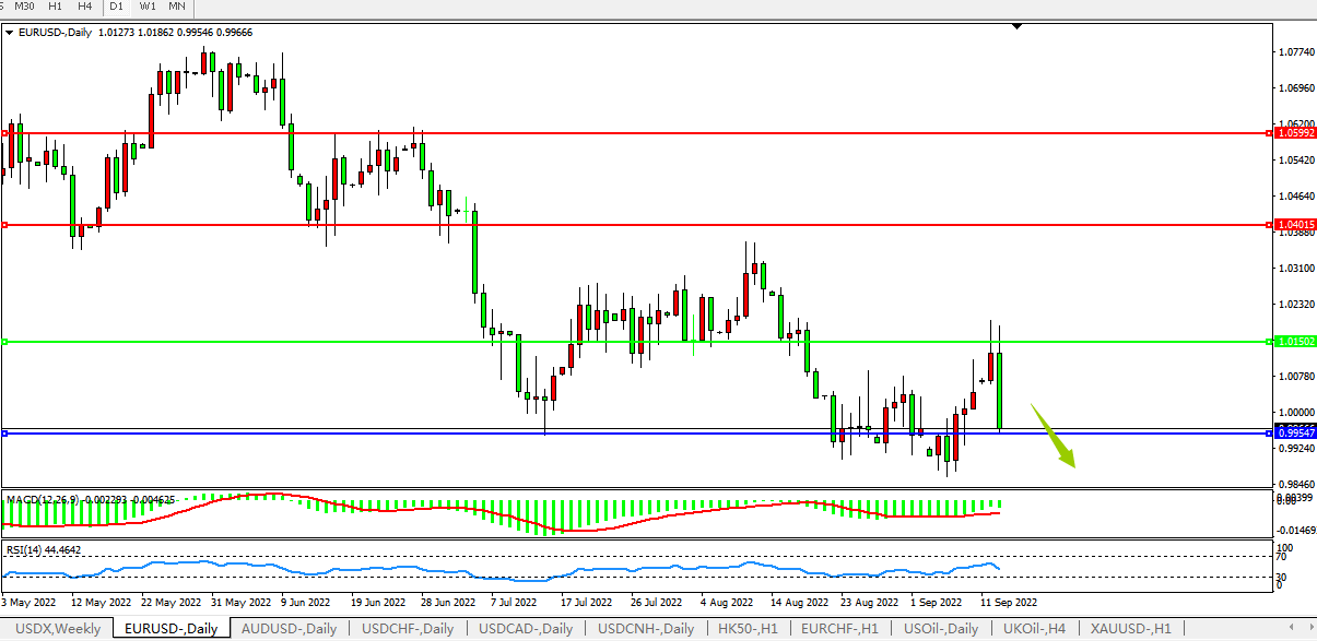 交易策略:1.0150下方看跌,目标0.9950、0.9800