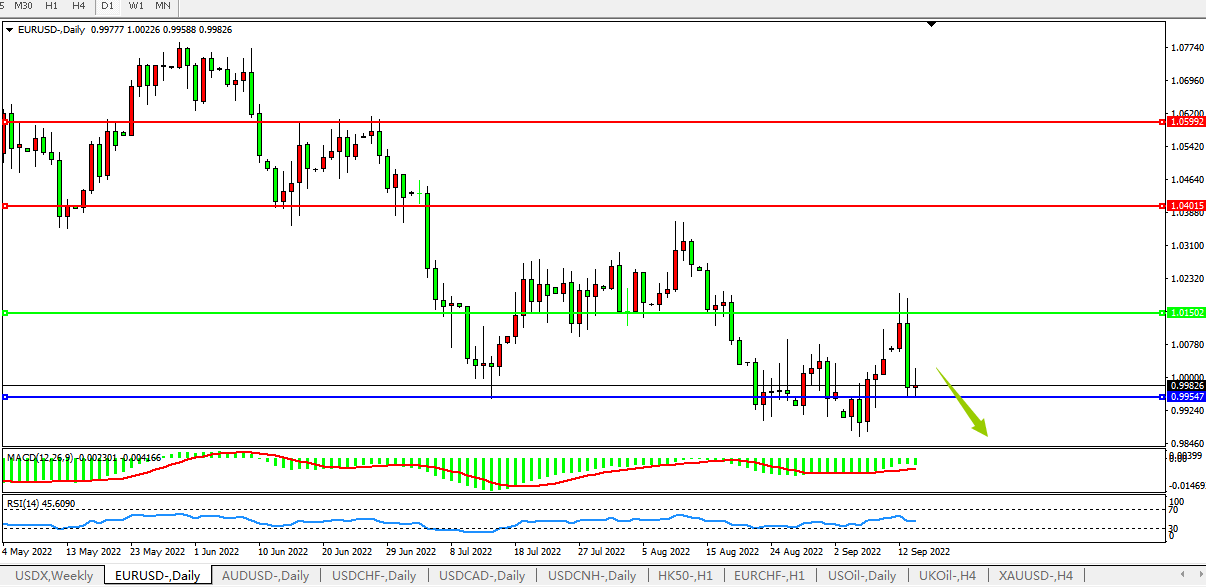 交易策略:1.0150下方看跌,目标0.9950、0.9800