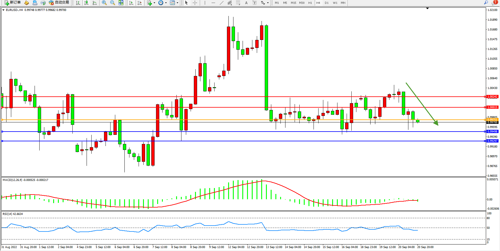 交易策略:0.99751下方看跌,目标0.99498、0.99297