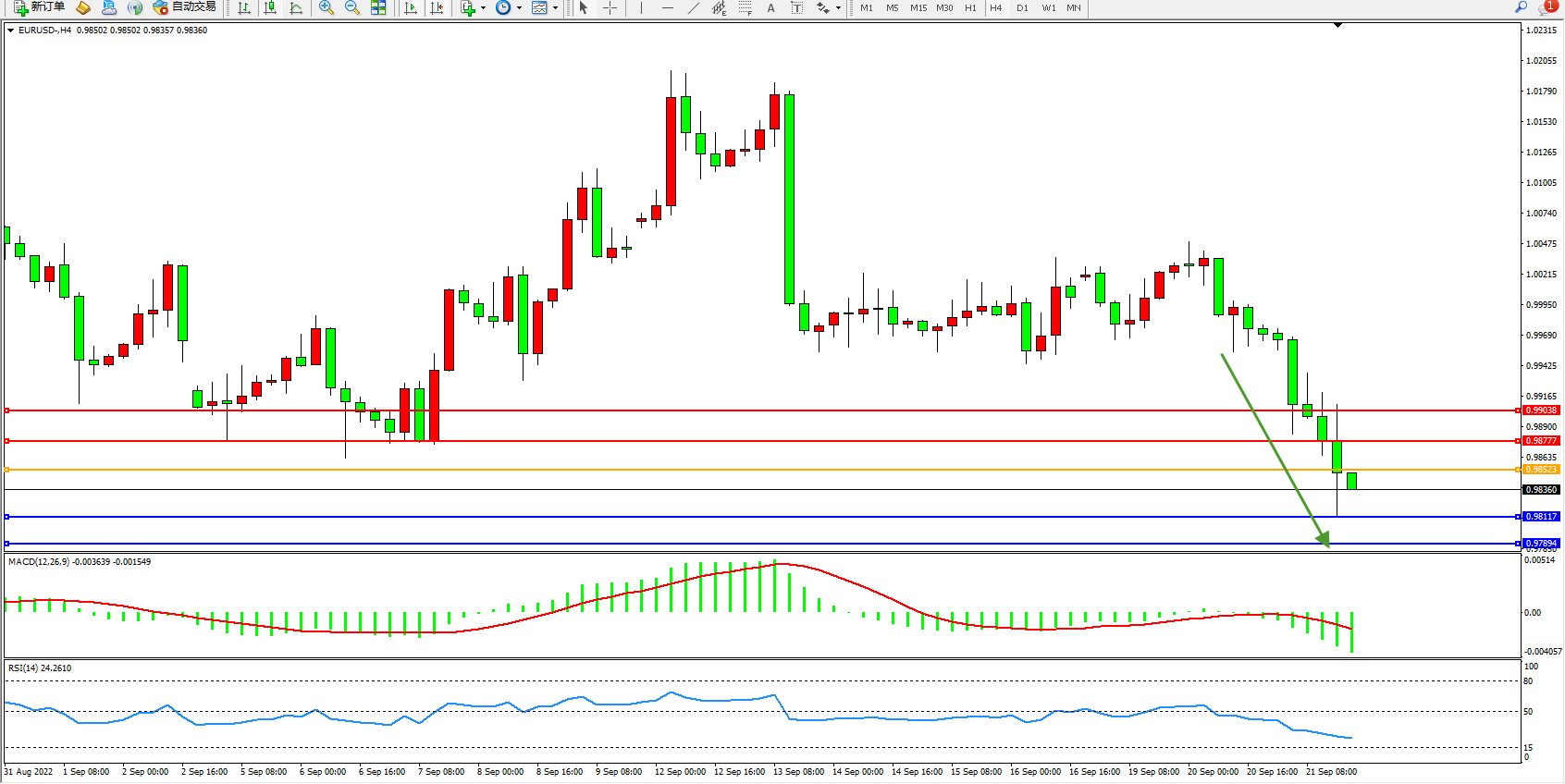 欧元兑美元维持0.98360附近震荡,由于美元走强以及欧元区经济面临的一系列挑战(如衰退风险和通胀上升),欧元兑美元将在未来几周跌破年内新低。