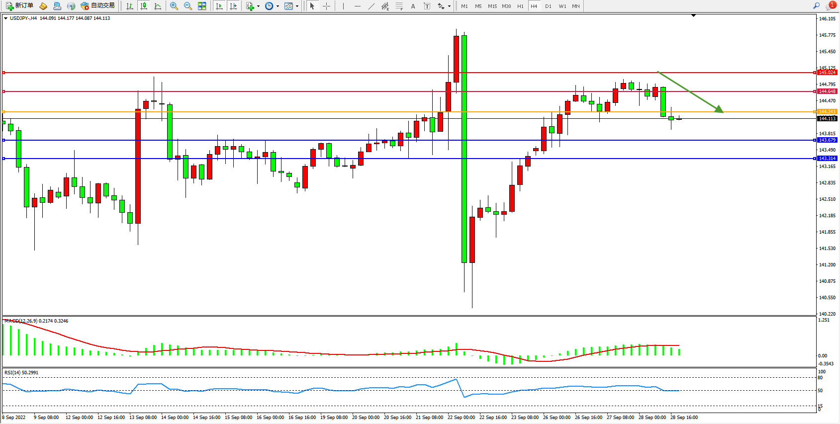 4小时图看:多头动力维持震荡上扬,高位短期遇阻整理后开始缓慢回撤,市场空头动力开始涌现,MACD指标处于多头区域维持窄幅整理缓慢下行,RSI指标处于50均衡线附近弱势徘徊;