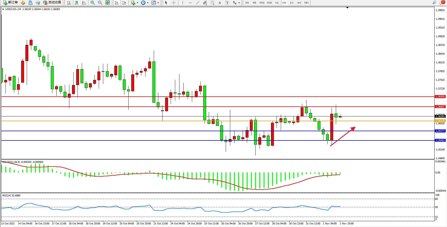交易策略:1.36120上方看涨,目标1.36607、1.36950