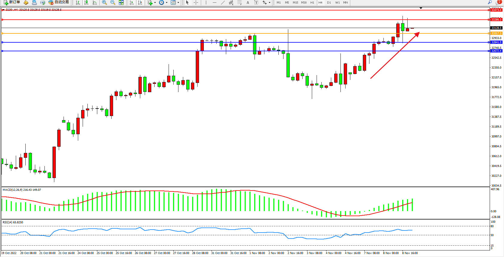 道琼斯指数11月8日(周二)收盘上涨334.09点,涨幅1.02%,报33161.09点;美国中期选举的第一轮投票已经开始,东海岸的投票站于当地时间8日早上6时开放,这将决定下一届国会的组成,并为拜登总统在白宫的剩余任期定下基调。周二投票之际,美国人正努力应对极高的通胀和生活成本,经济已成为民主党和共和党支持者最关心的问题。