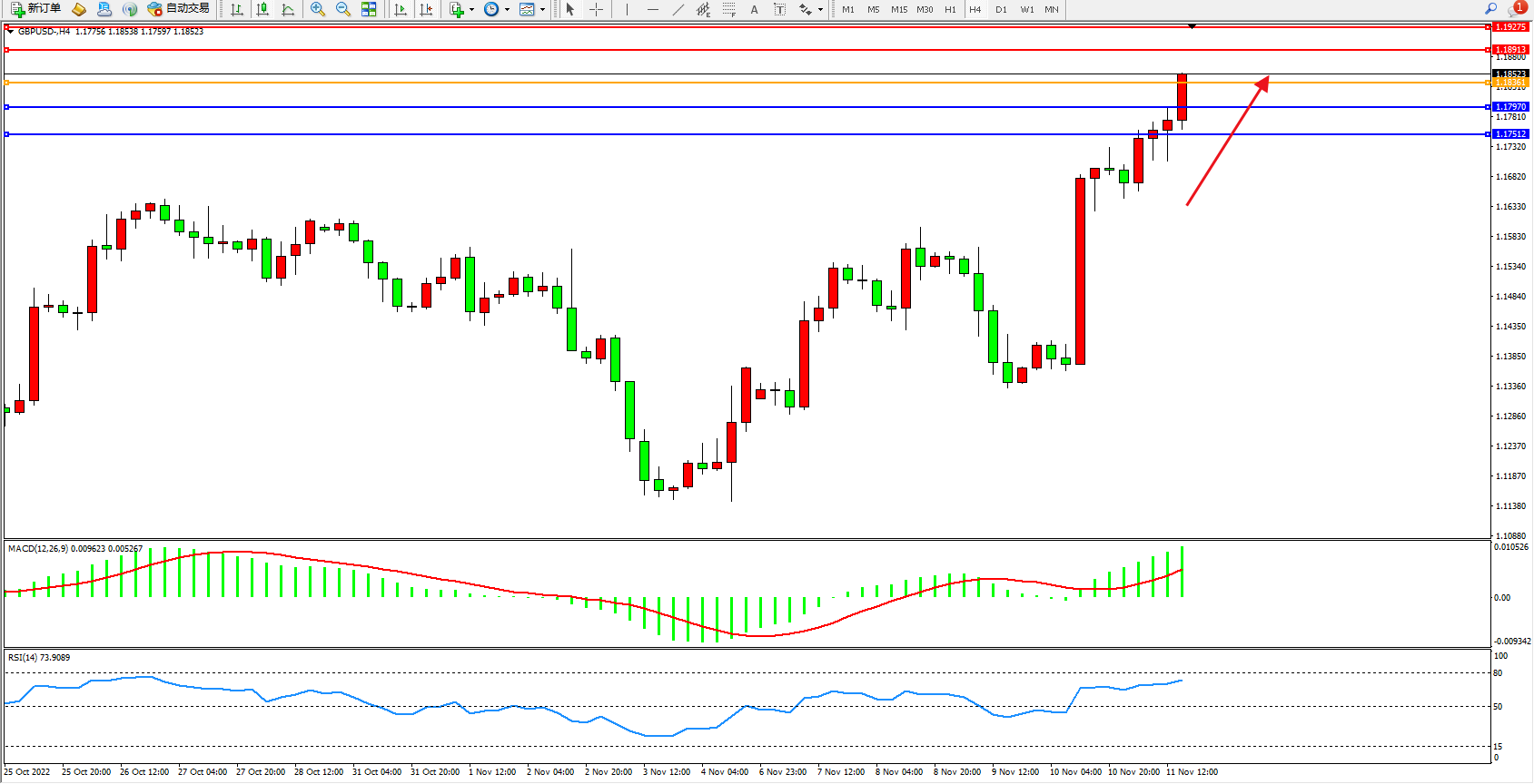 英镑兑美元维持1.18523附近震荡,英国第三季度GDP年率修正值 2.4%,预期2.10%,前值4.40%。英国现在担心的是,这将成为全国范围内长期衰退的起点,在生活成本危机中,服务业受到沉重打击,商业投资也受到影响(第三季度下降0.5%)。