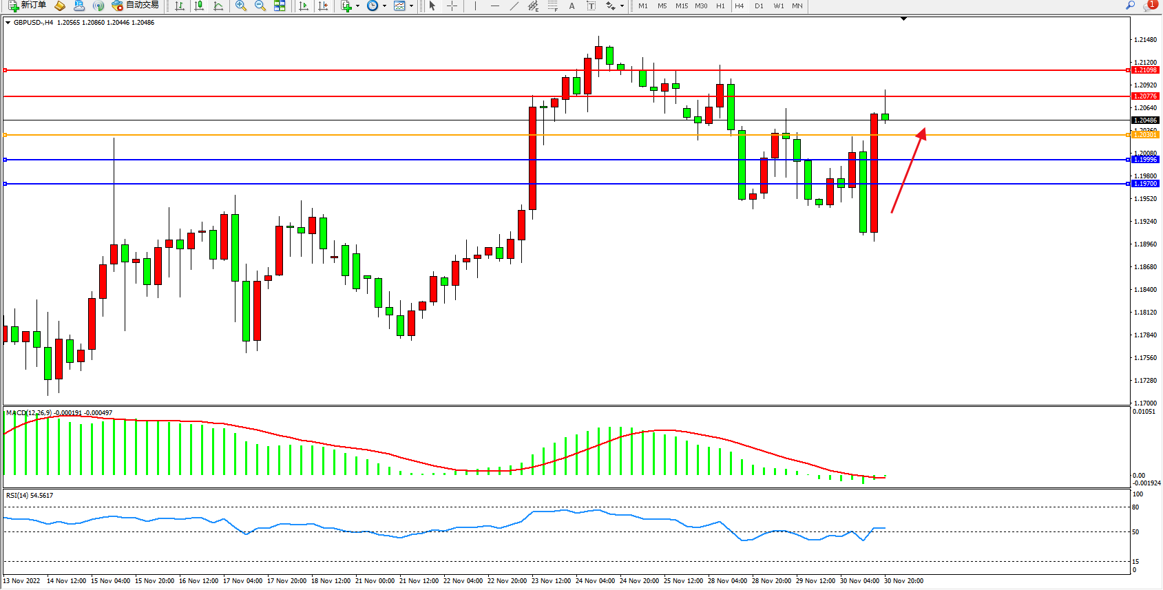 英镑美元GBPUSD ——4小时K线图显示: