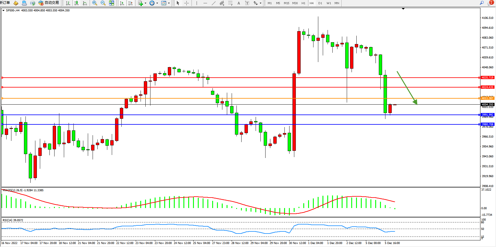 标普500指数12月5日(周一)收盘下跌73.00点,跌幅1.79%,报3998.70点;市场认为美联储似乎准备再加息两次,每次加息50个基点至5%,并在一段时间内保持这一水平。这与2006年6月至2007年9月期间的情况类似,当时美联储完成了一个紧缩周期,将利率维持在高位。