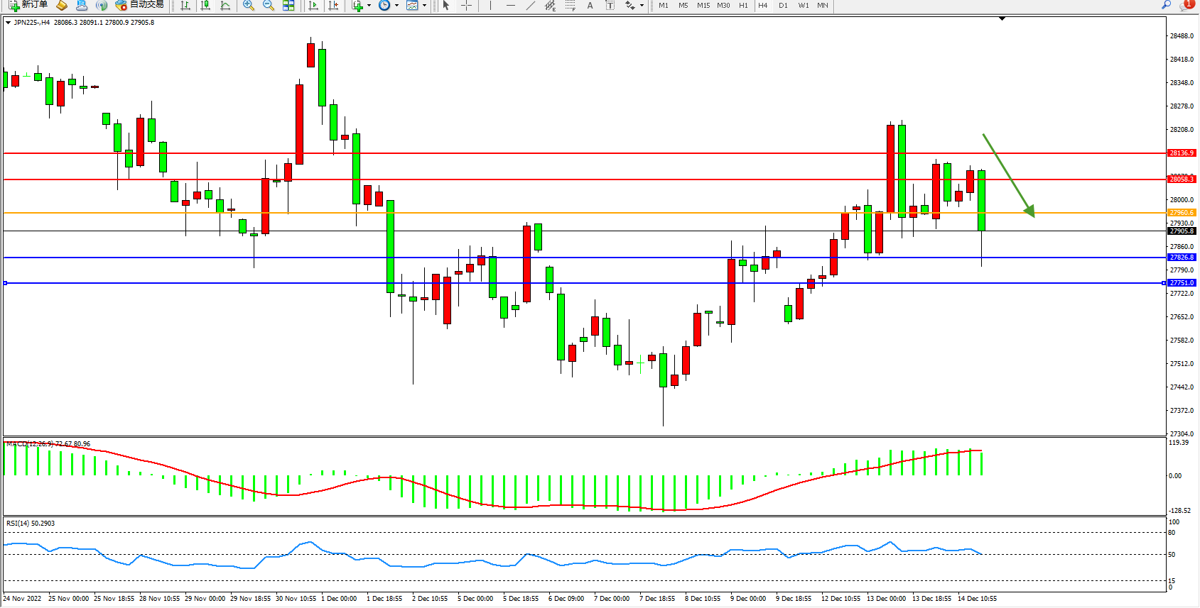 日经225指数12月14日(周三)收盘上涨211.65点,涨幅0.76%,报28166.50点。日本制造商信心在2022年第四季下降,因为持续成本压力和全球需求放缓前景给日本经济前景蒙上阴影。