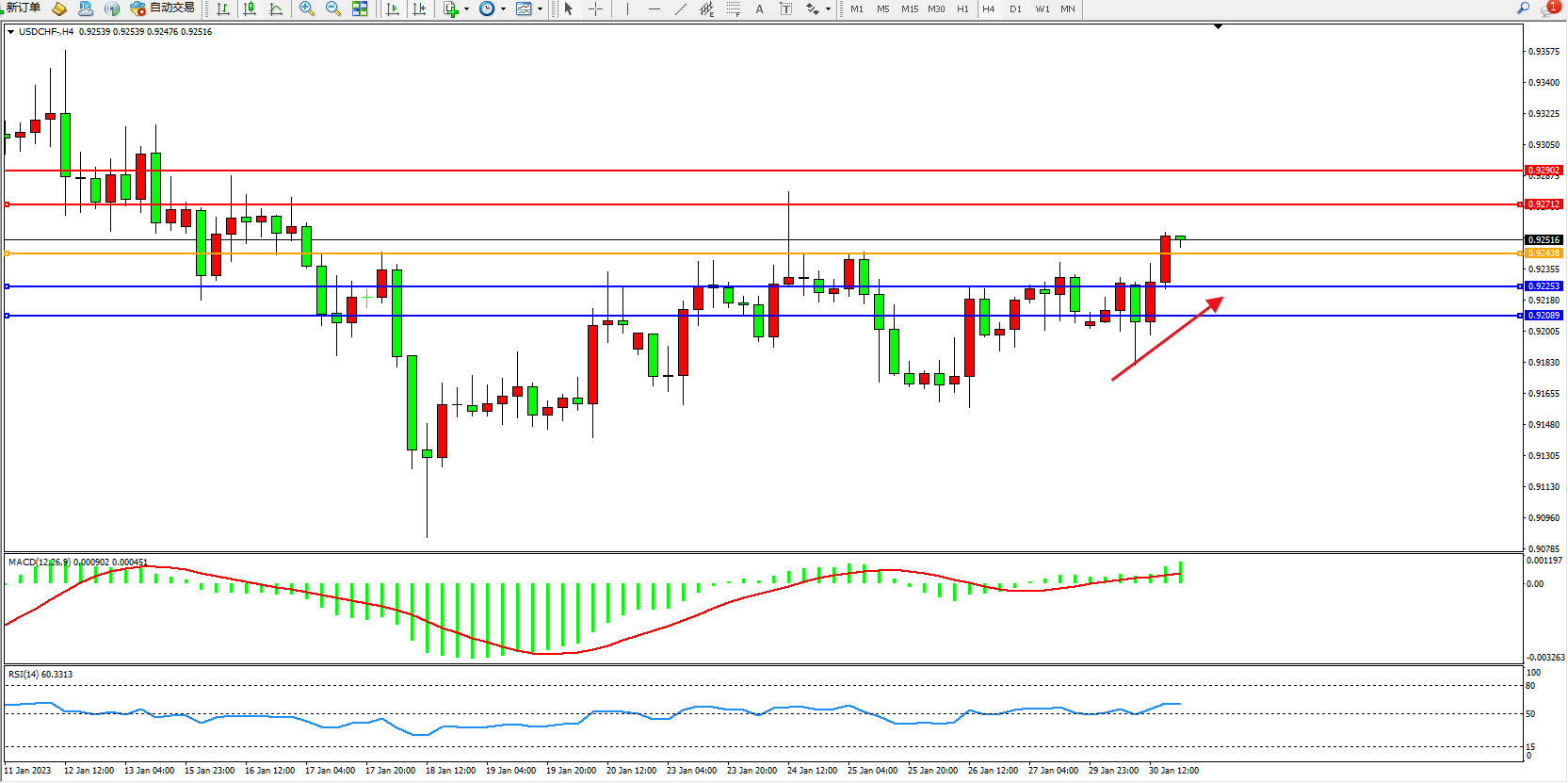 USDCHF:震荡拉升 USDCHF  XAUUSD