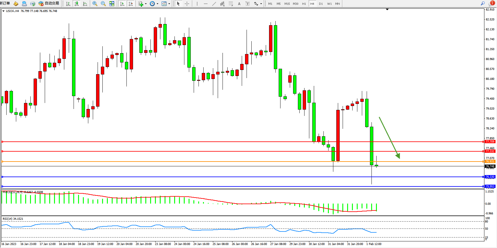 原油维持76.748附近震荡,美国至1月27日当周EIA原油库存 414万桶,预期37.6万桶,前值53.3万桶。俄克拉荷马州库欣原油库存 231.5万桶,前值426.7万桶。战略石油储备库存 0万桶,前值0万桶。