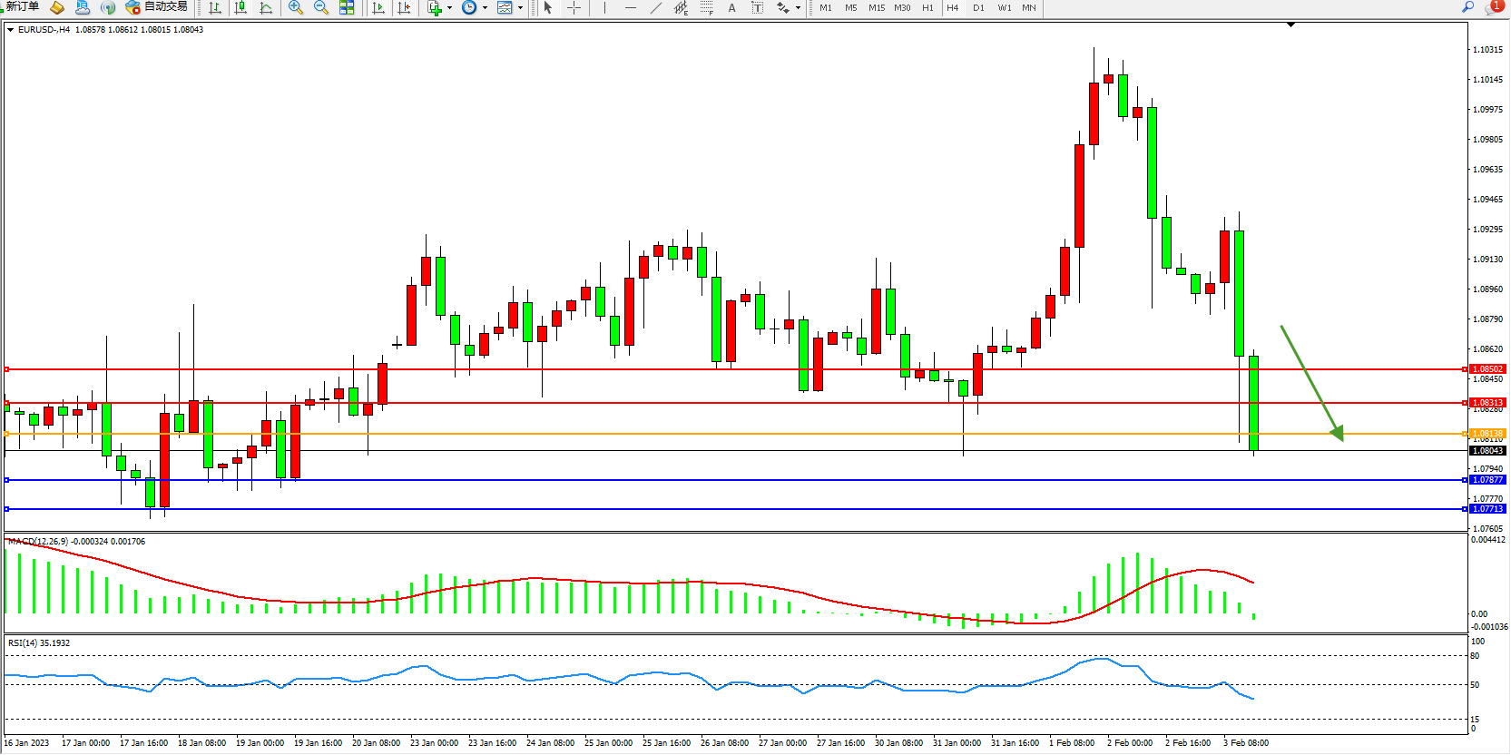交易策略:1.08138下方看跌,目标1.07877、1.07713