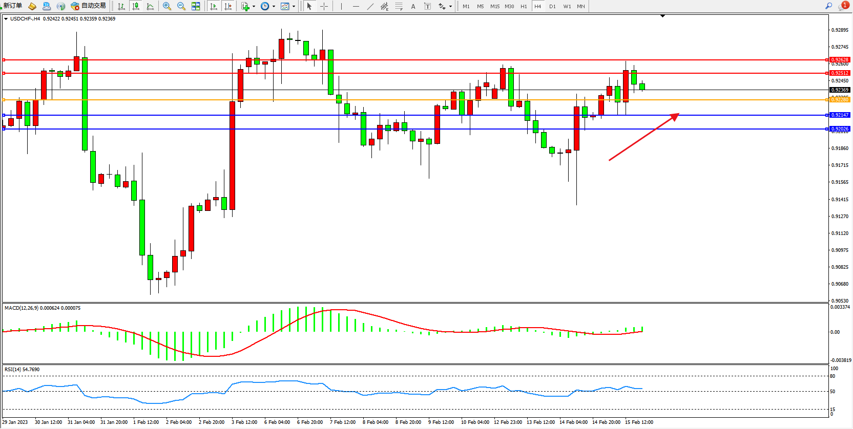 美元兑瑞郎维持0.92369附近震荡,市场预计美联储将在7月份达到本轮加息周期的利率峰值5.263%。在接下来的3月和5月的两次联邦公开市场委员会(FOMC)会议上,美联储将各加息至少25个基点。