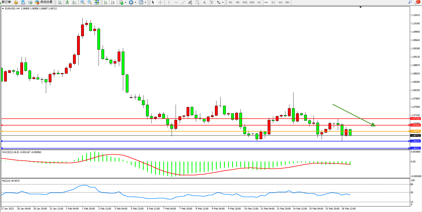 欧元美元EURUSD—4小时K线图显示: