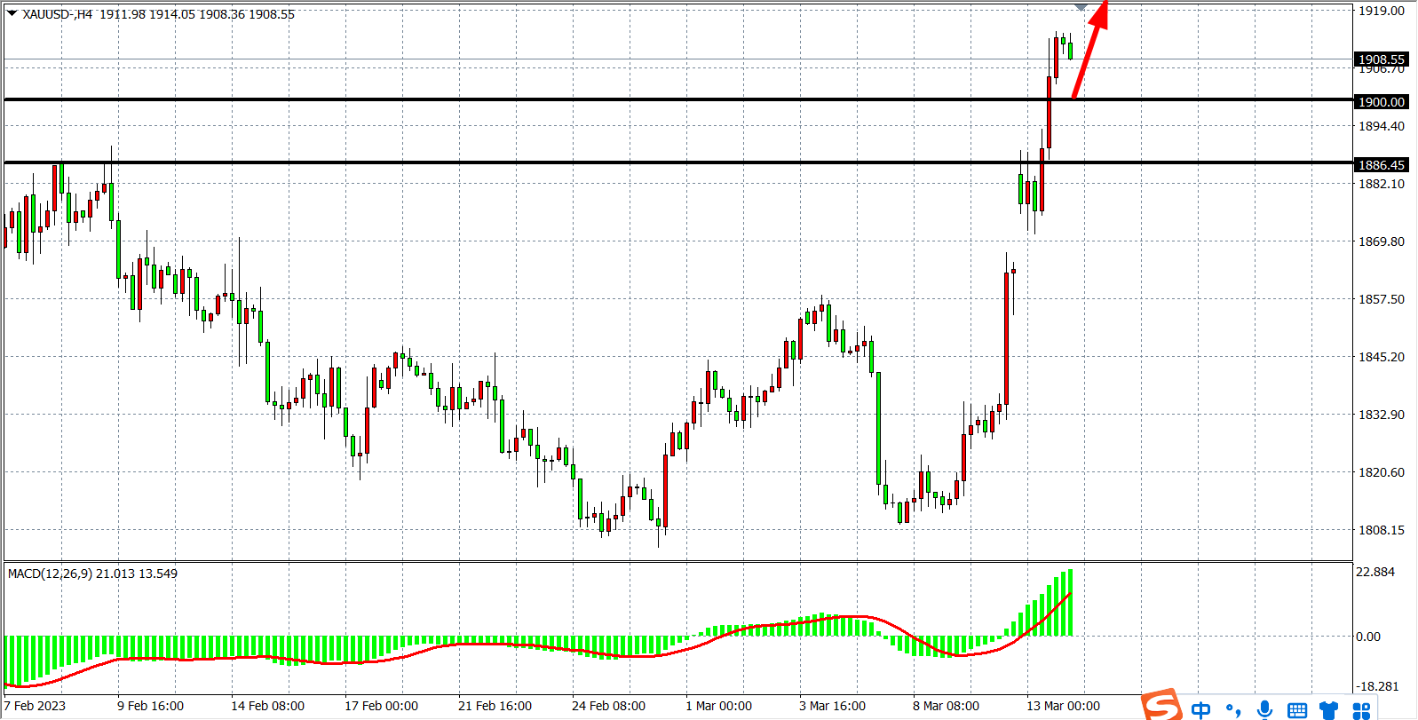 支撑位:1900.00 1886.00